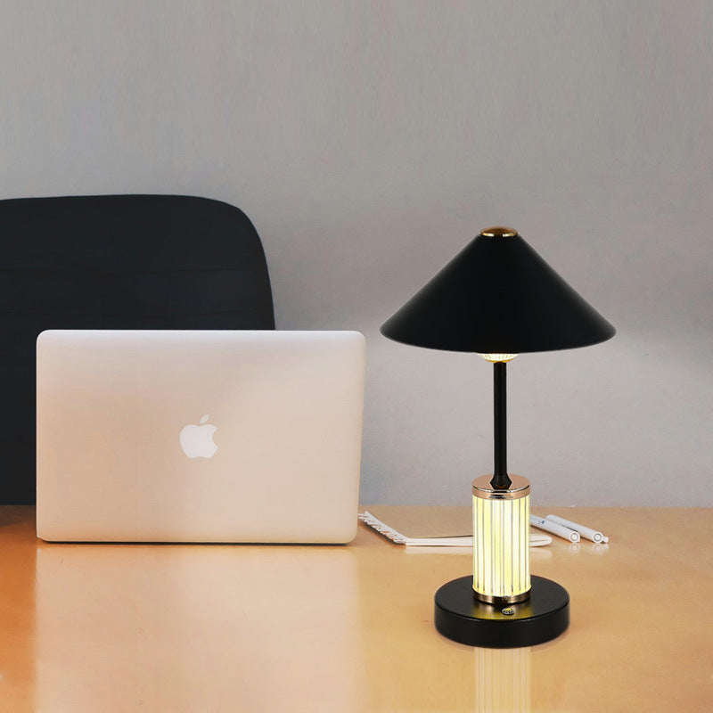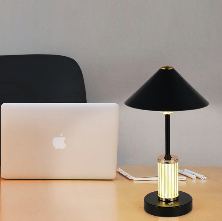 Contemporary Scandinavian Rechargeable Iron Acrylic Conic Cylinder Touch Dimming LED Table Lamp For Bedroom