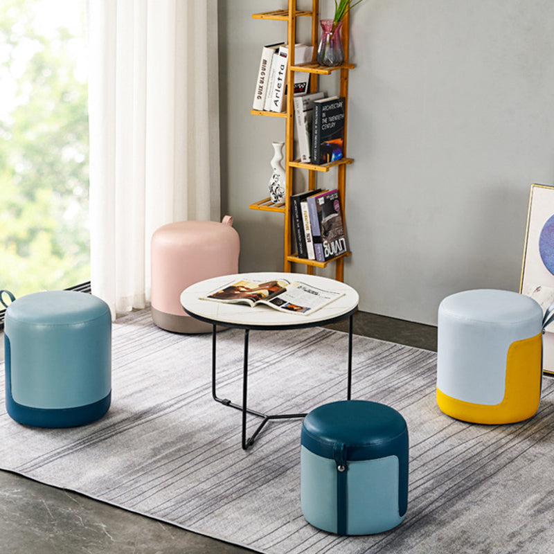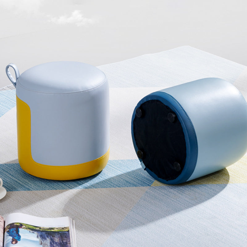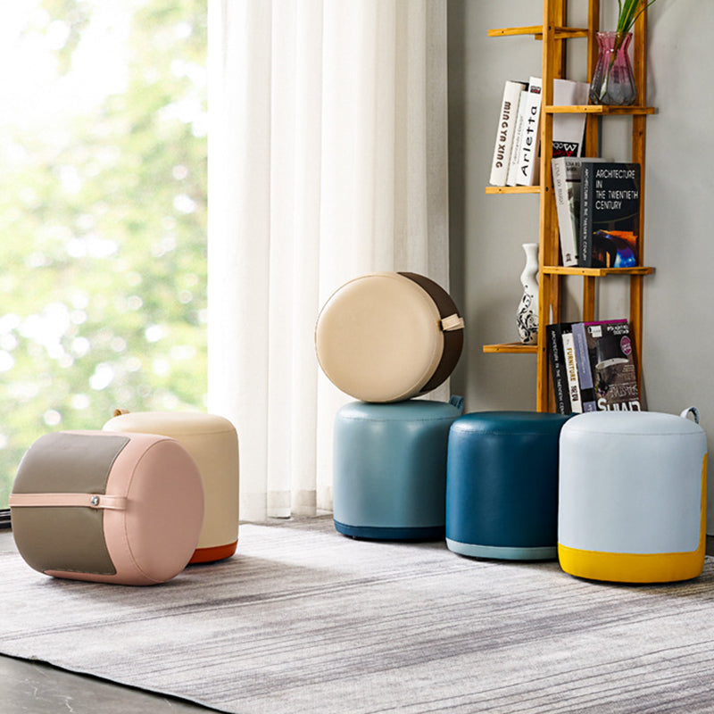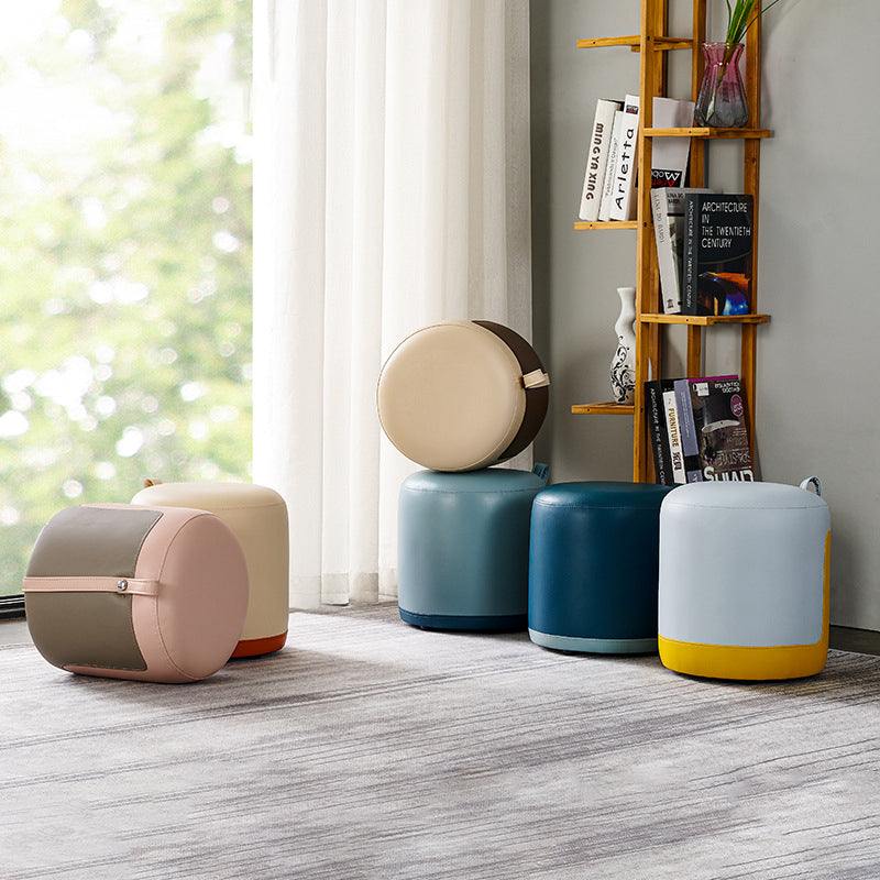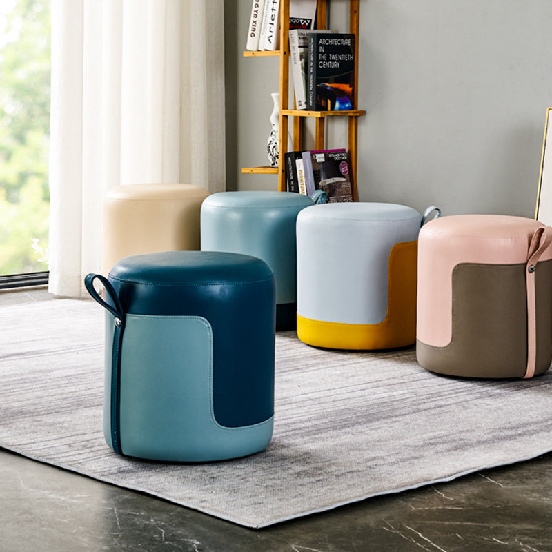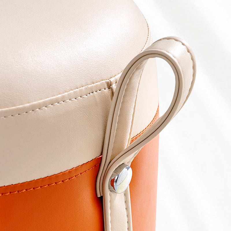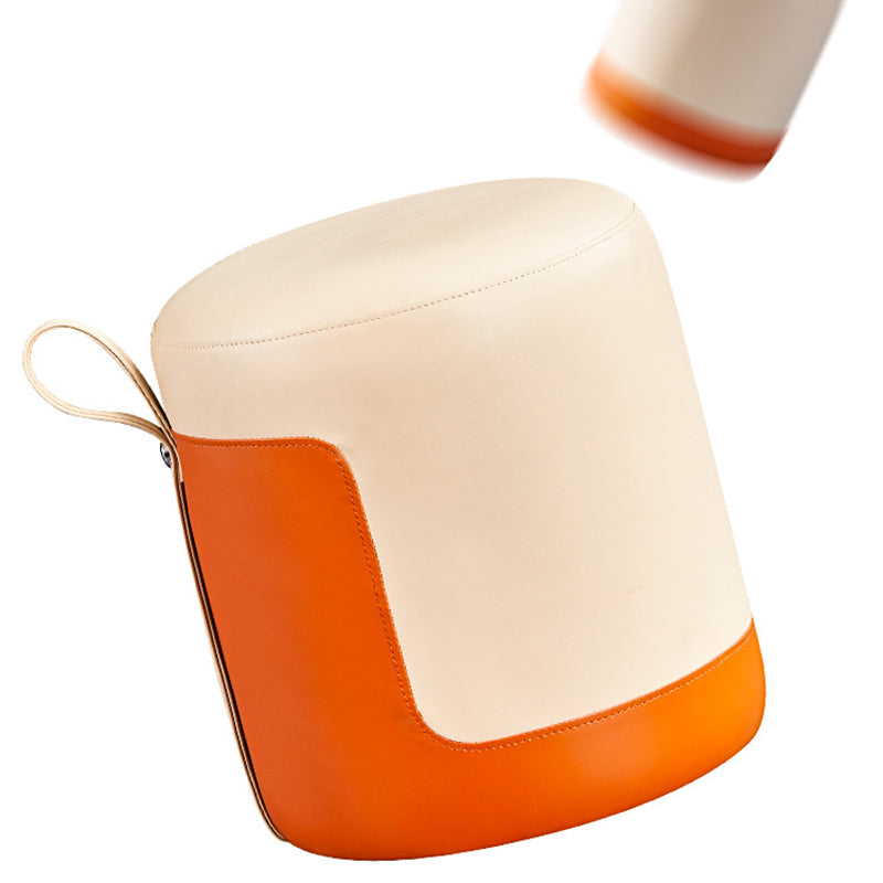 Contemporary Scandinavian Round Cat Paw Leather Solid Wood Frame Portable Low Stool For Bedroom