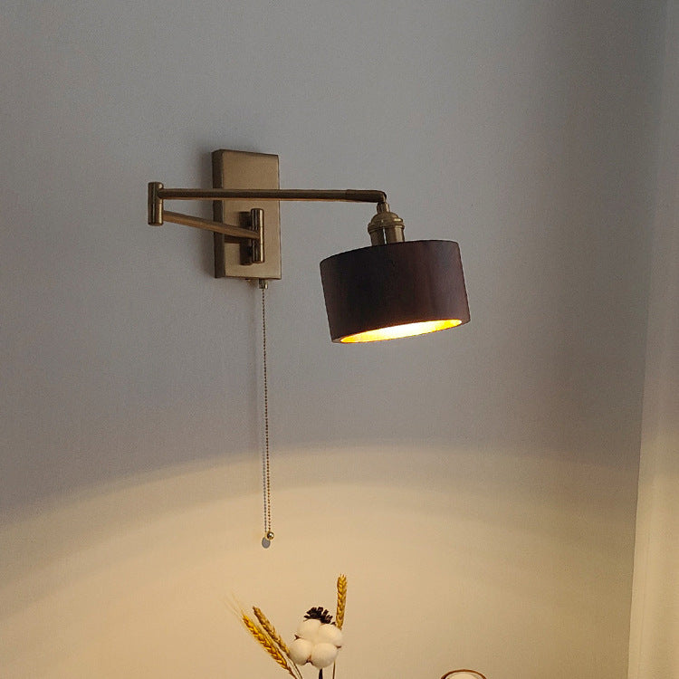 現代的なスカンジナビアの丸柱、回転可能な木製メタル1ライト壁取り付け用燭台ランプ、寝室用