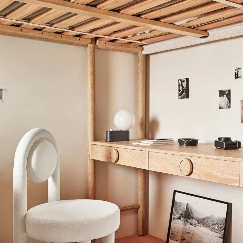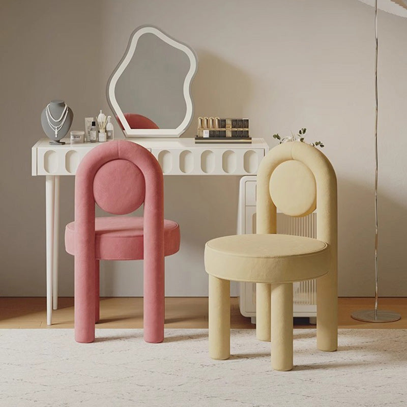 Contemporary Scandinavian Round Fabric Carbon Steel Frame Vanity Stool Backrest For Bedroom