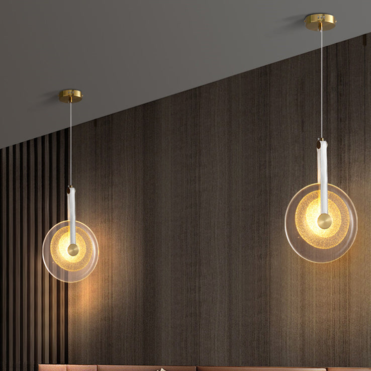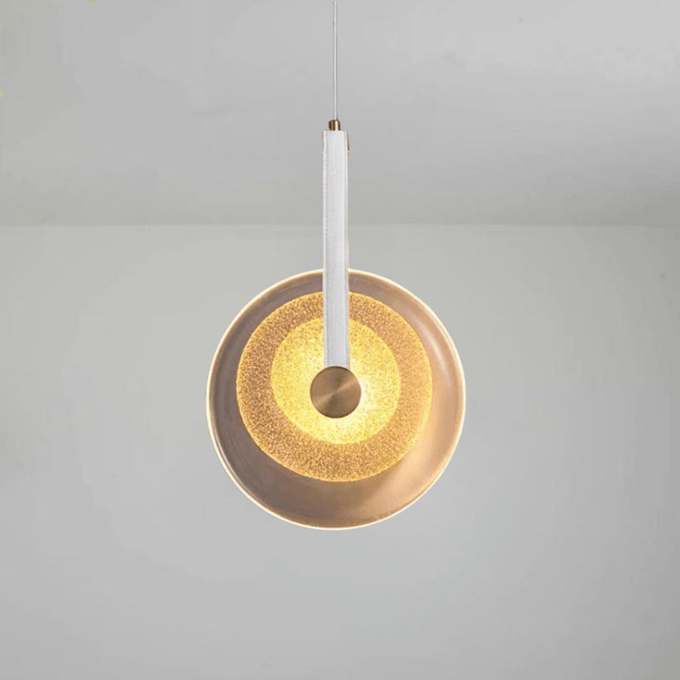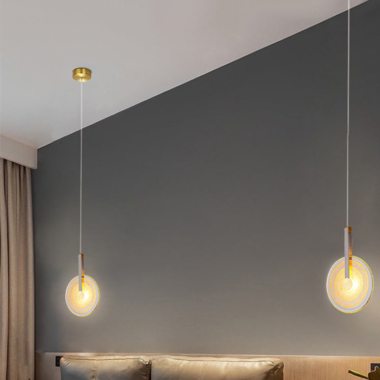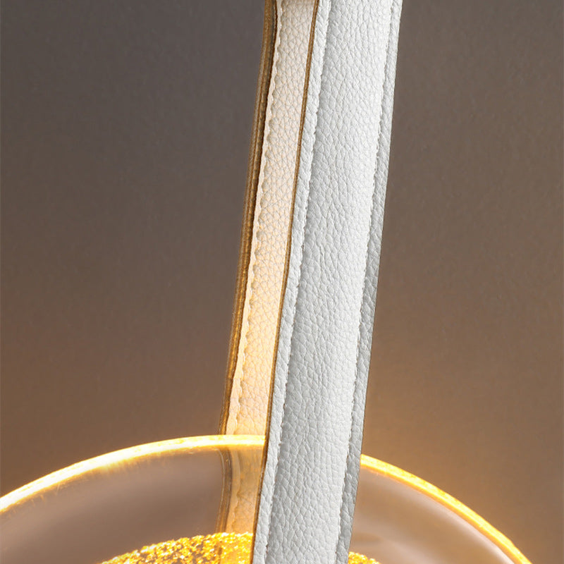 寝室用コンテンポラリースカンジナビアラウンドアイアンレザーガラスLEDペンダントライト