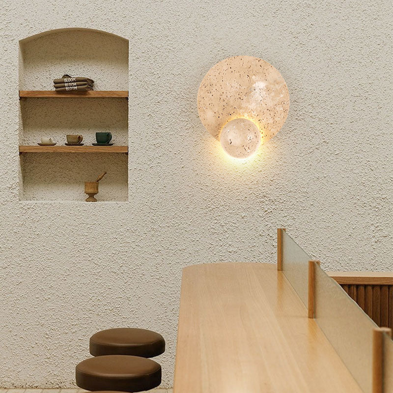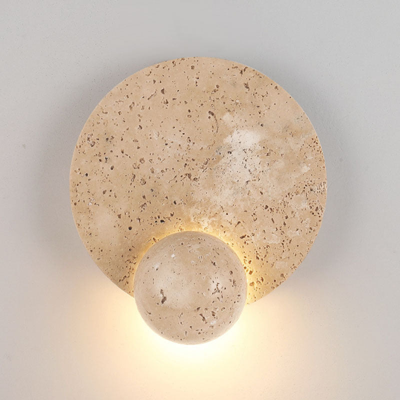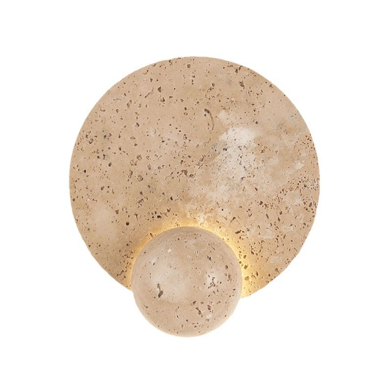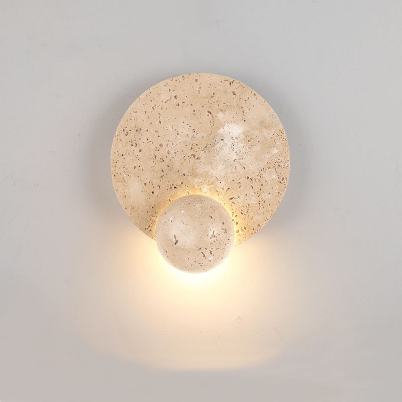 現代的なスカンジナビアのラウンドオーブイエロートラバーチンLEDウォールスコンスランプリビングルーム用