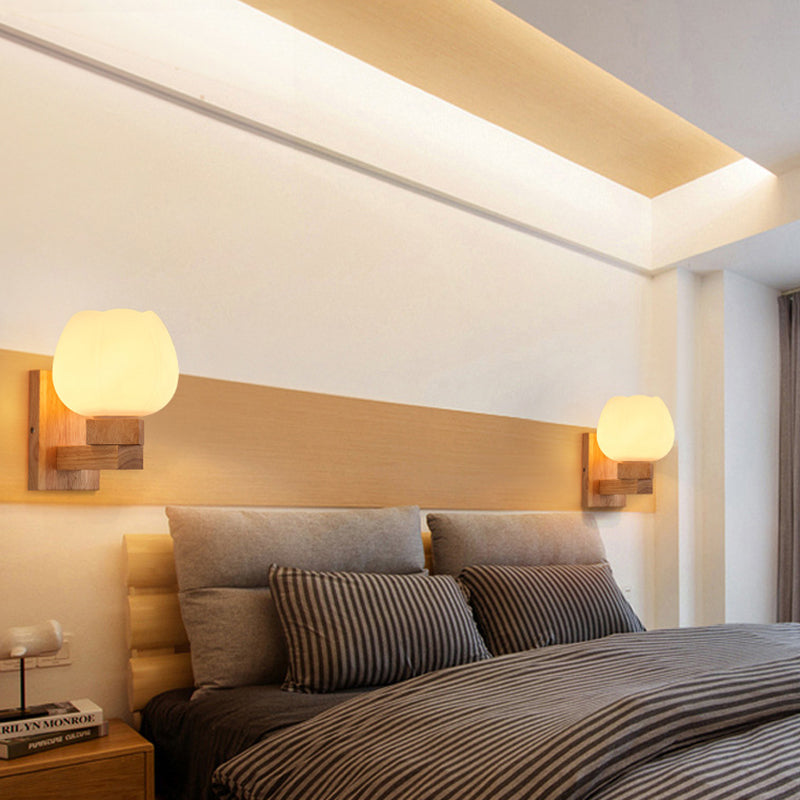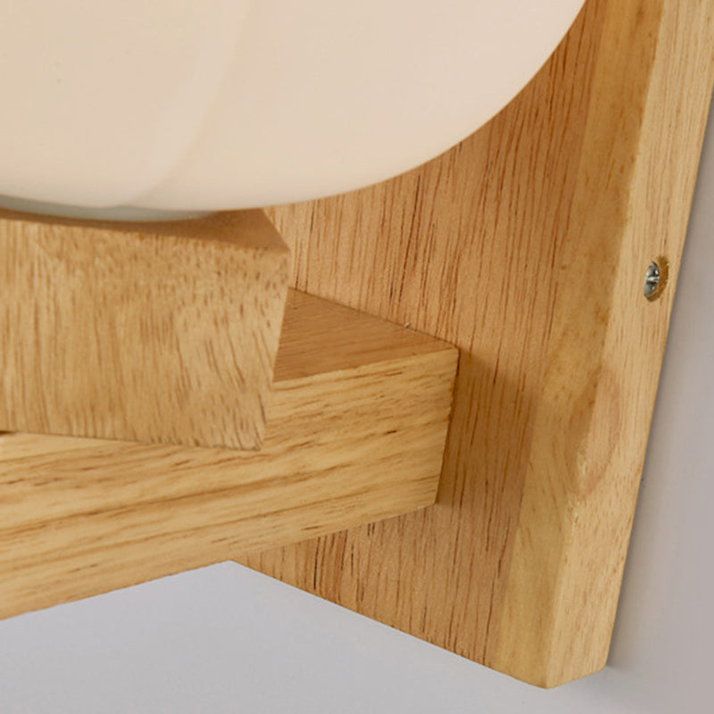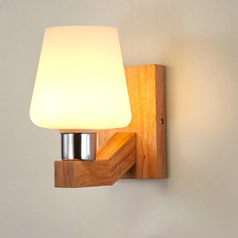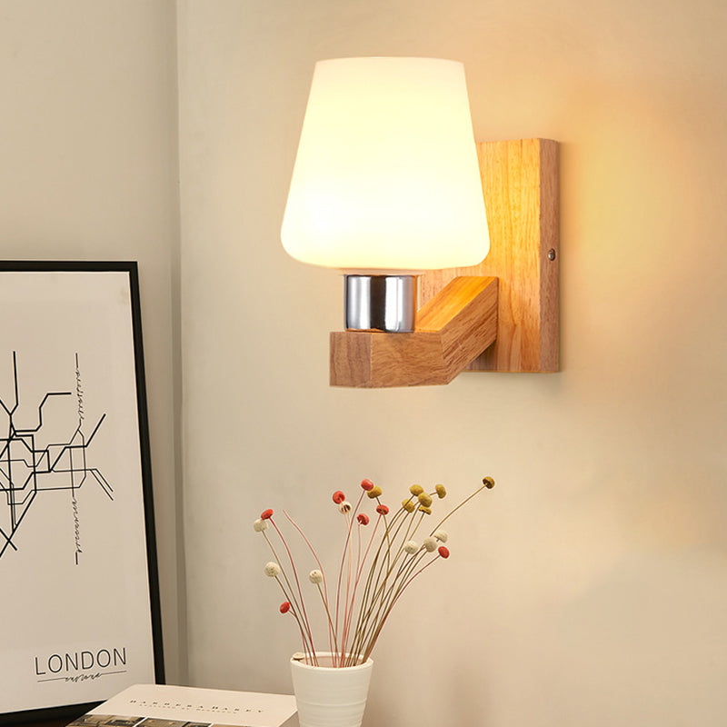 現代的なスカンジナビアのラウンドポッドスクエアガラスアイアンウッド1ライトウォールスコンスランプ寝室用