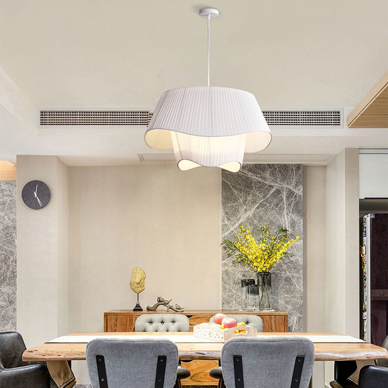 現代的なスカンジナビアのラウンドテーブル、二重層ウェーブベース、アイアンファブリックアクリル、リビングルーム用4ライトペンダントライト