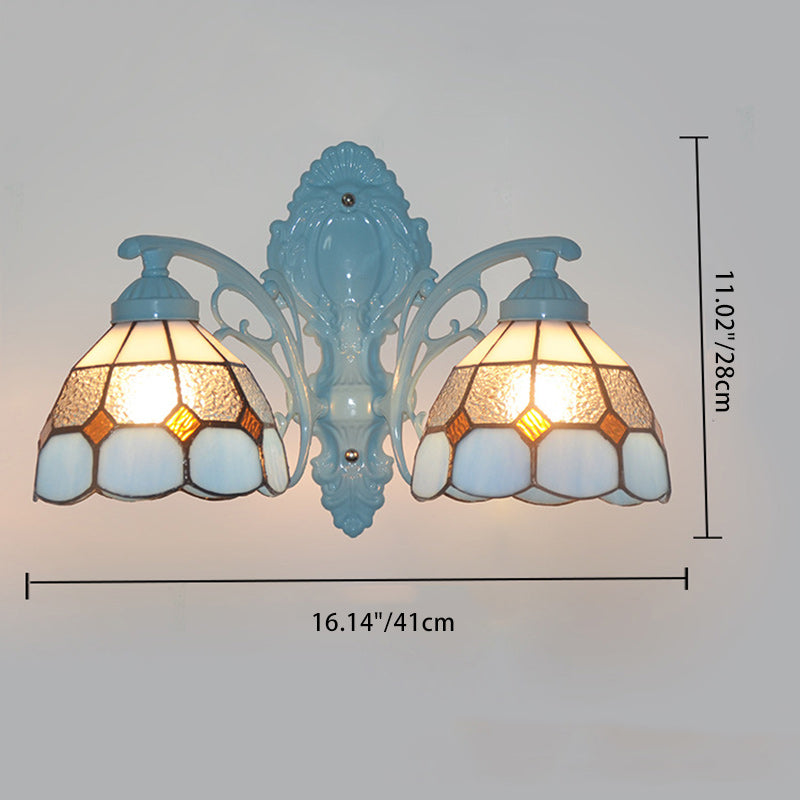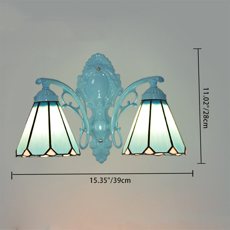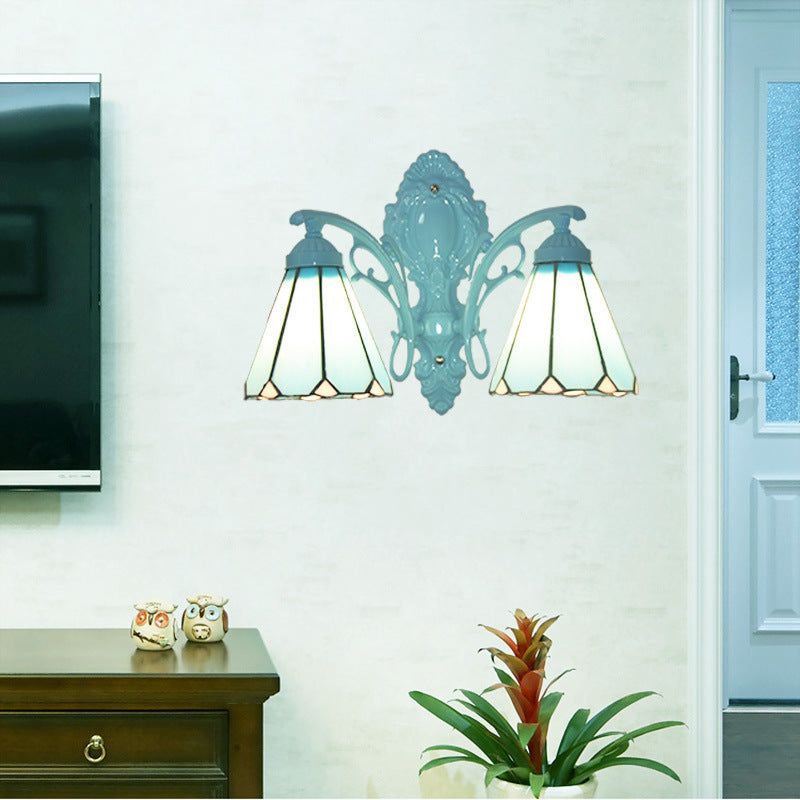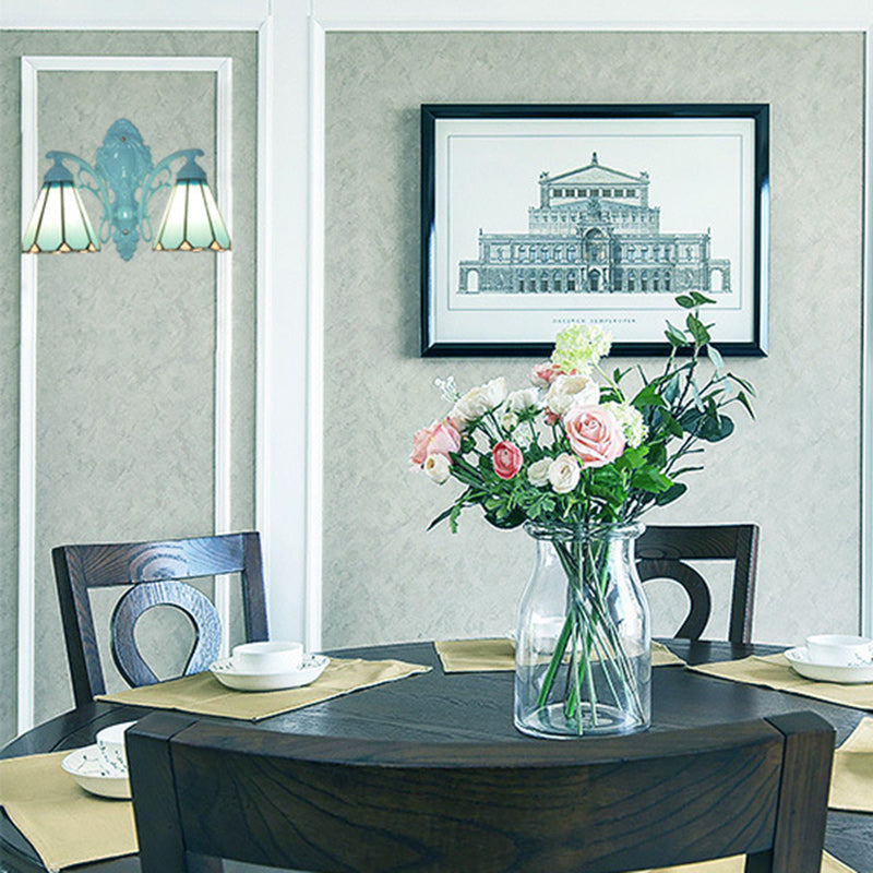 現代的なスカンジナビアのラウンドテーパードブランチガラスアイアン2ライトウォールスコンスランプリビングルーム用