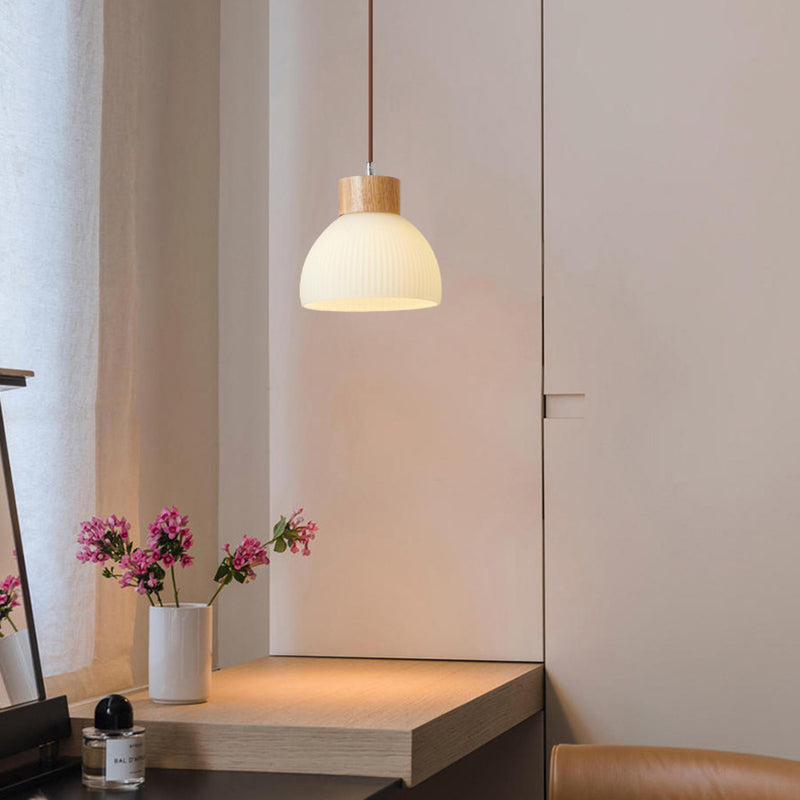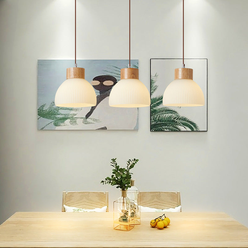 現代的なスカンジナビアの半円垂直シリンダー木製ガラス1/3ライトペンダントライトアイランドライトリビングルーム用