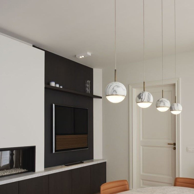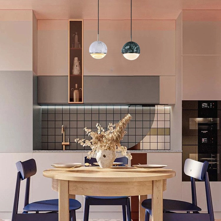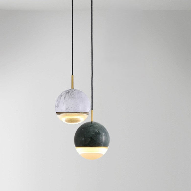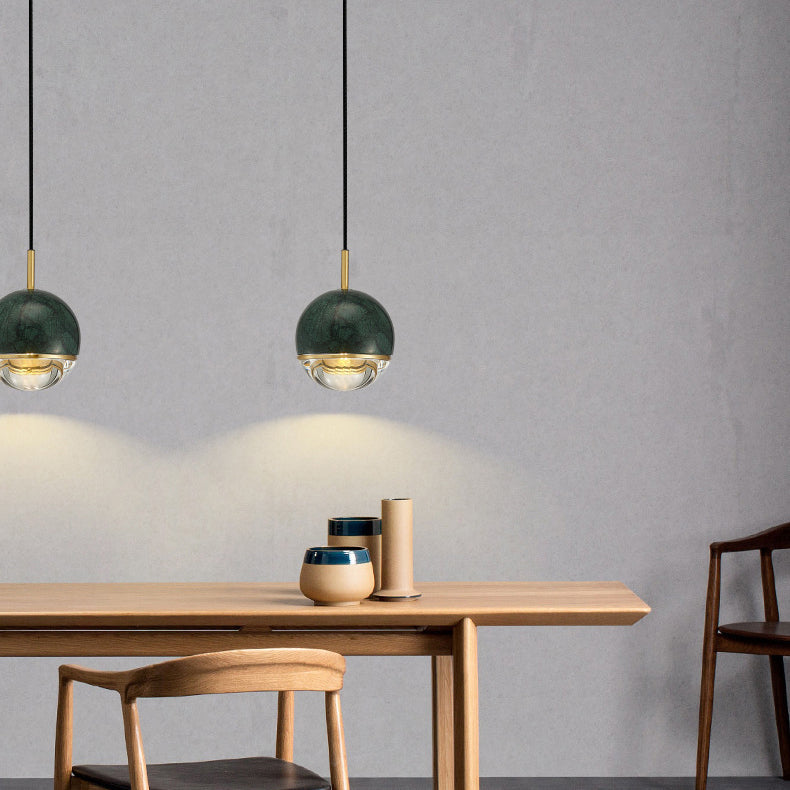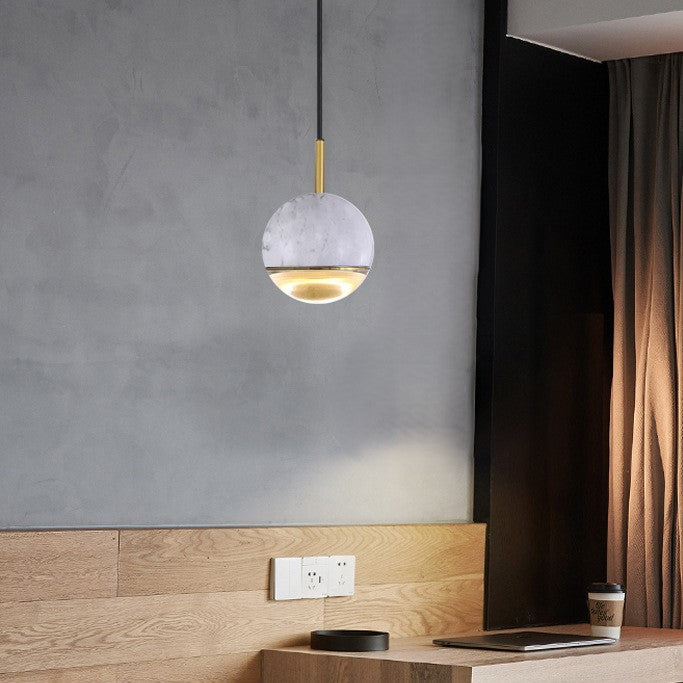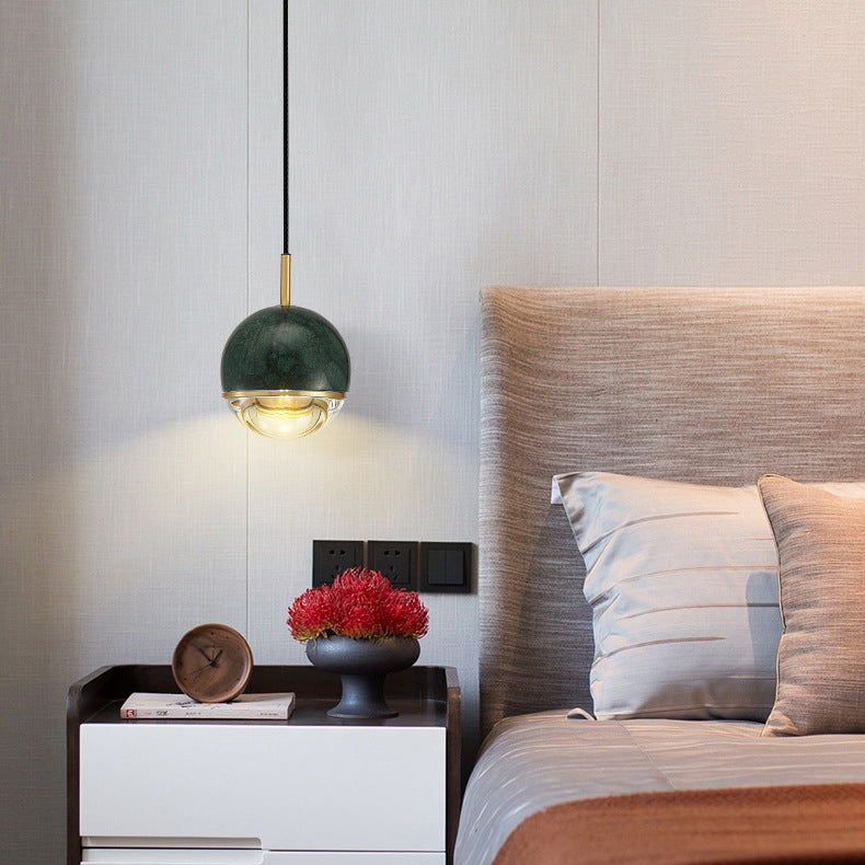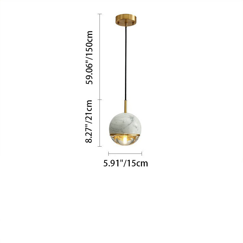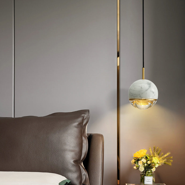 現代的なスカンジナビアの球形ディスクベース銅大理石ガラス1灯ペンダントライト寝室用