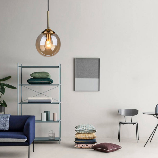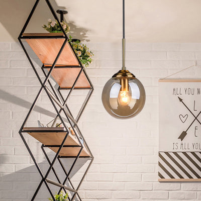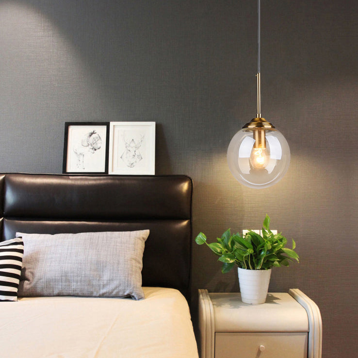 現代的なスカンジナビアの球状鉄ガラス1灯ペンダントライトアイランドライト寝室用