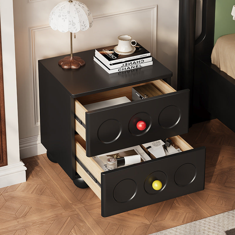 Contemporary Scandinavian Square Rectangle Wood Nightstand 2-Drawer For Bedroom