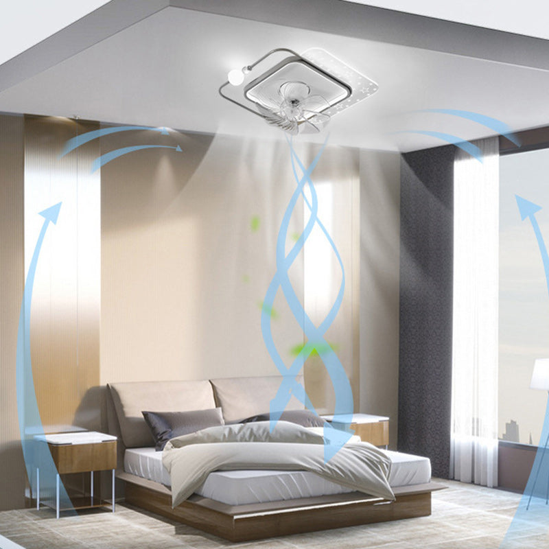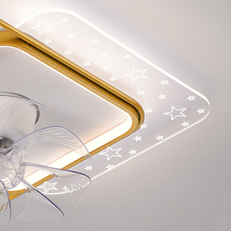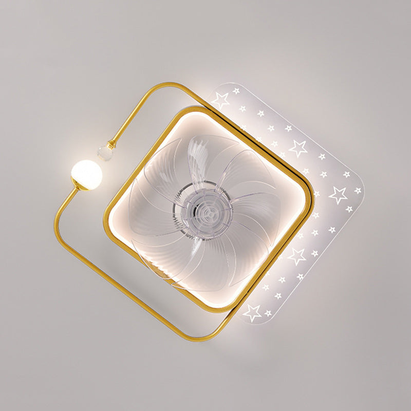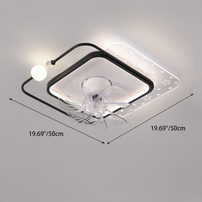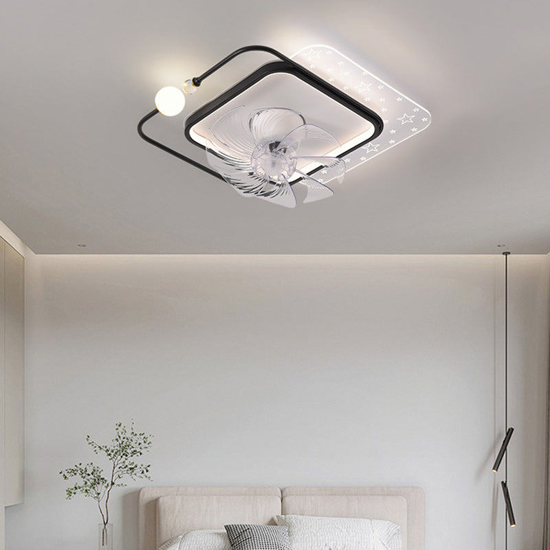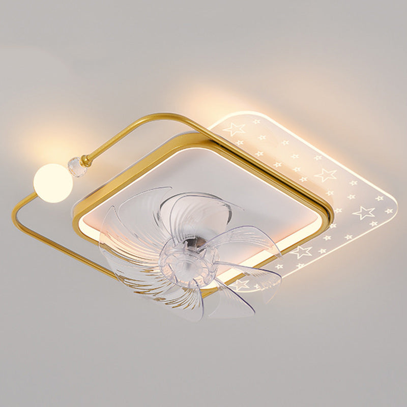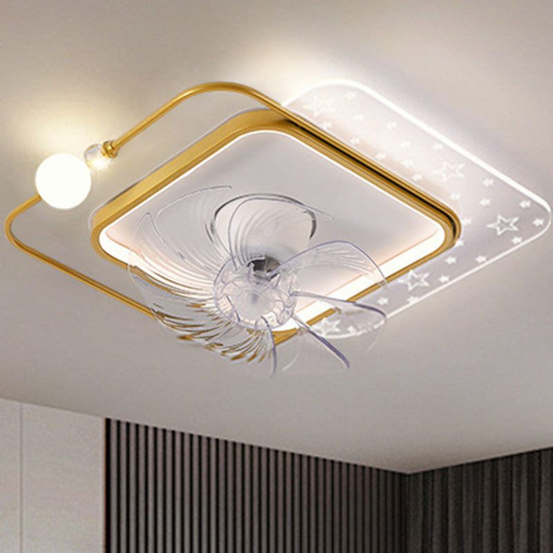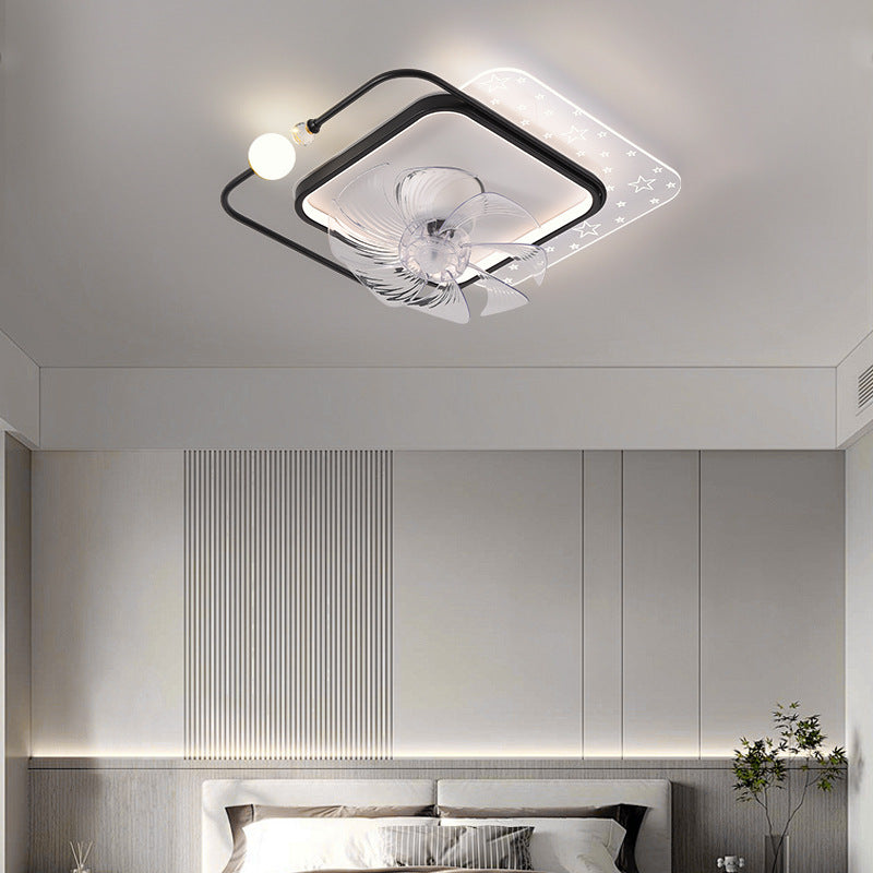 現代的なスカンジナビアのスクエアラウンドオーバルABS銅ハードウェアLEDフラッシュマウントシーリングファンライト寝室用