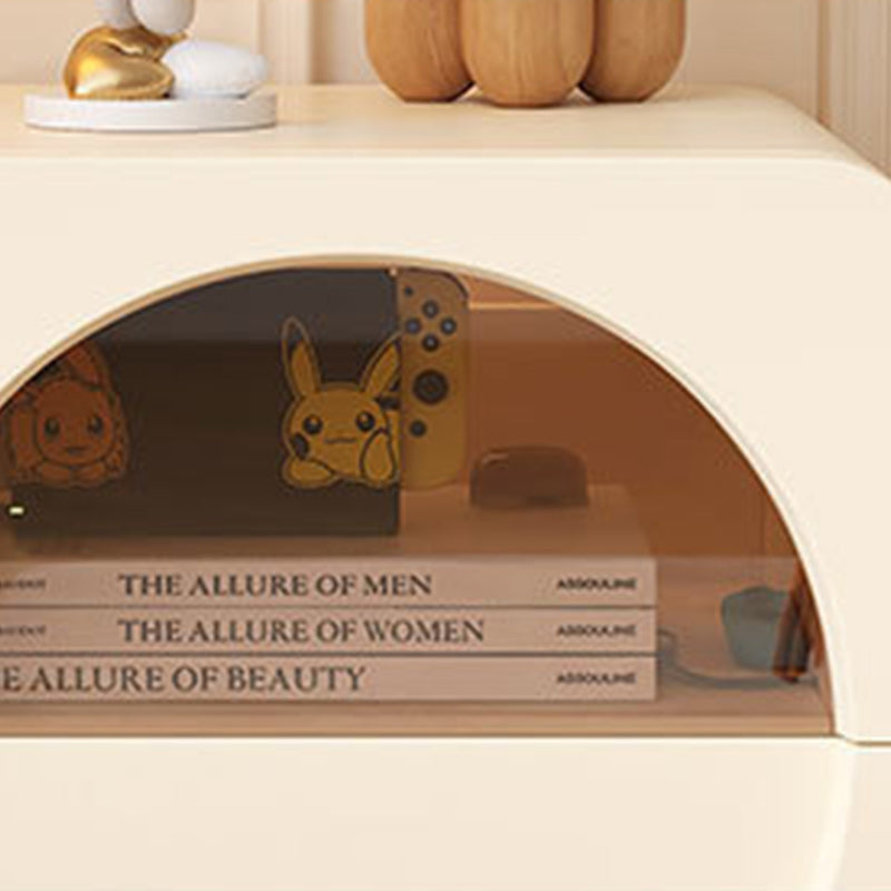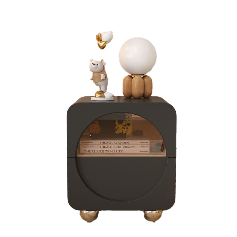 Contemporary Scandinavian Square Rounded Corners Napa Leather Glass Sheet Stainless Steel Nightstand 2-Drawer For Bedroom