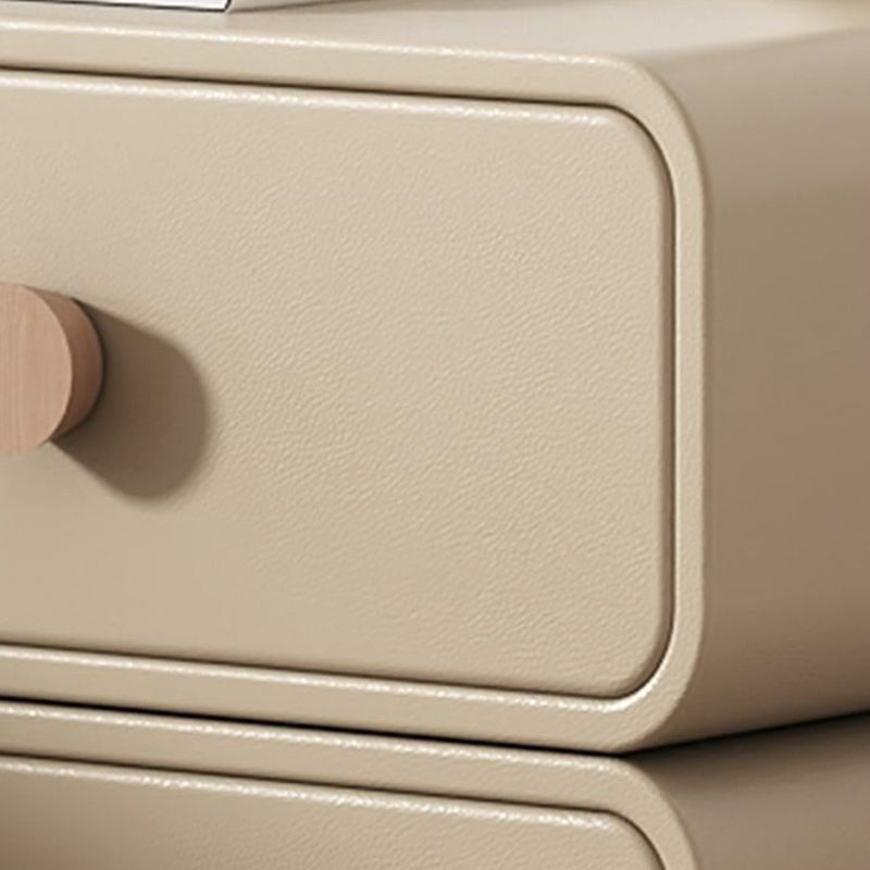Contemporary Scandinavian Square Tabletop Solid Wood Faux Leather Stainless Steel Nightstand 2-Drawer For Bedroom