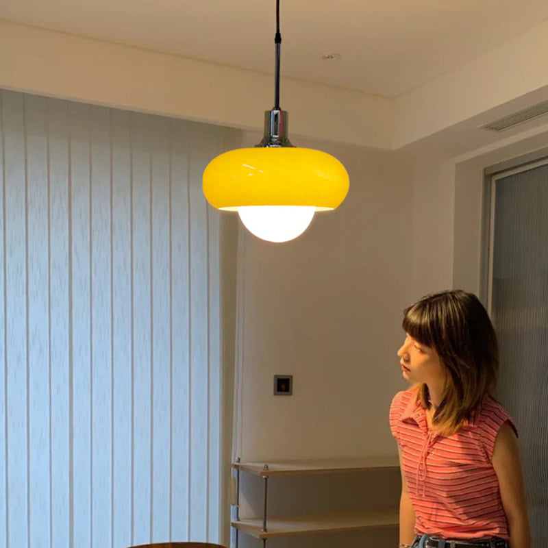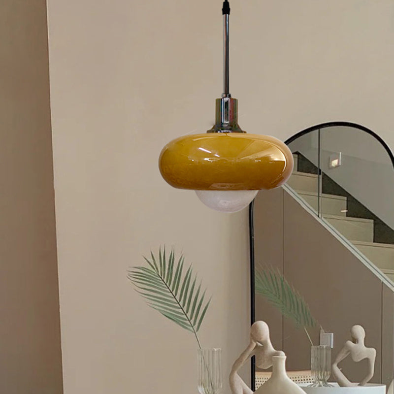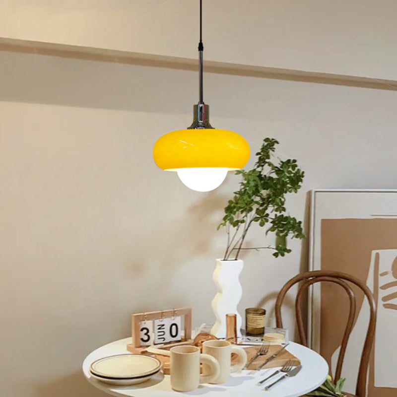 現代的なスカンジナビア風タルトラウンドハードウェアガラス1灯ペンダントライトダイニングルーム用