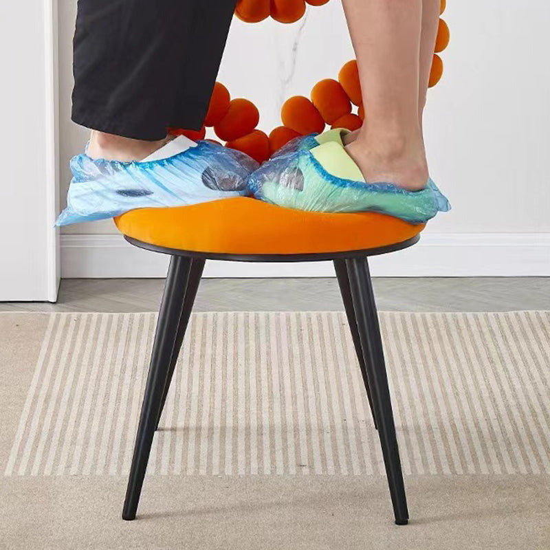 Contemporary Scandinavian Velvet Sponge Metal Heart Ball Round Vanity Stool Backrest For Bedroom