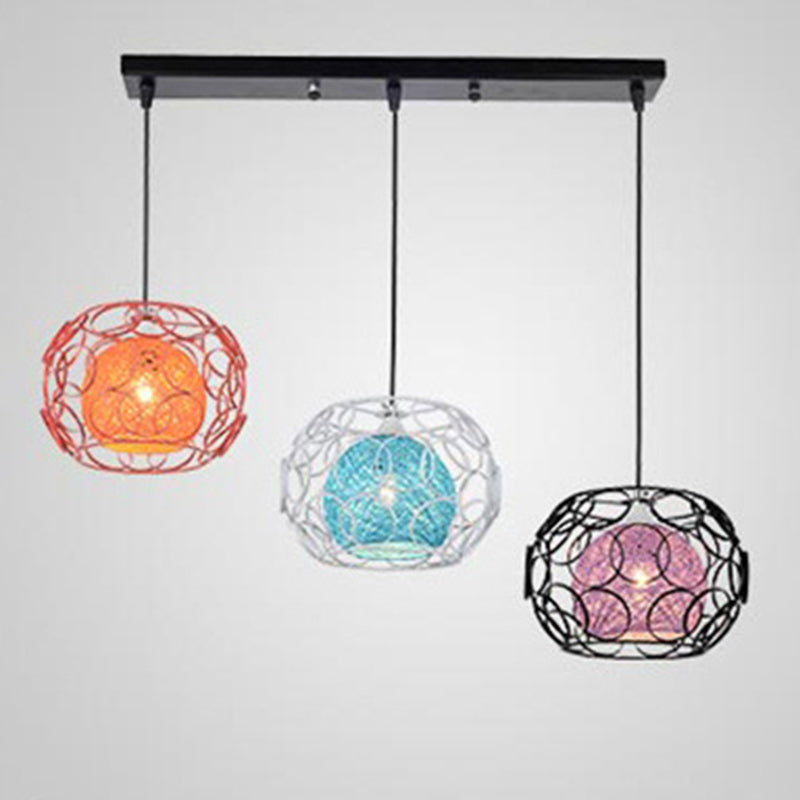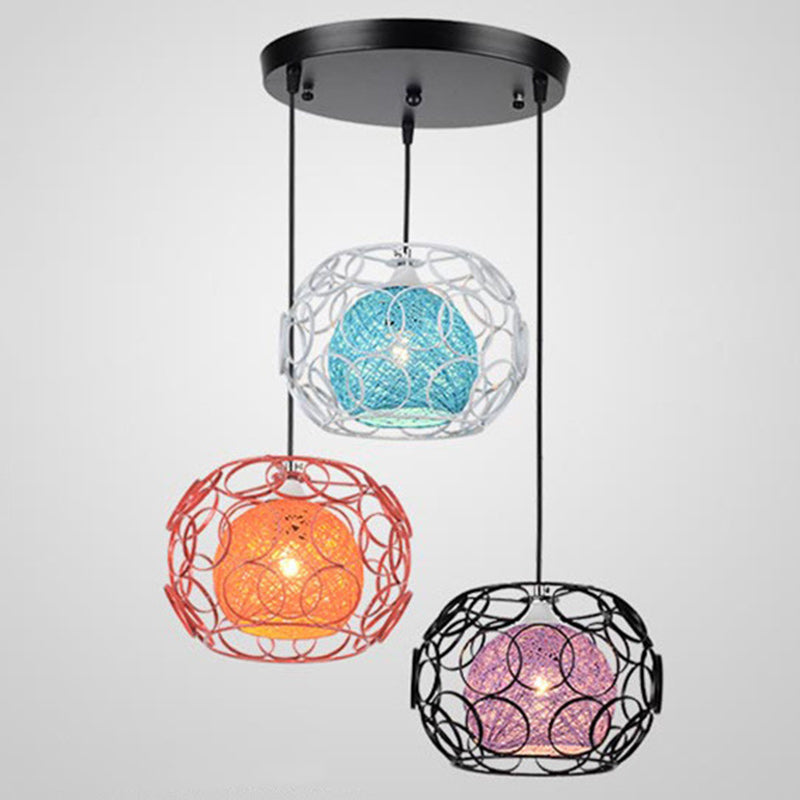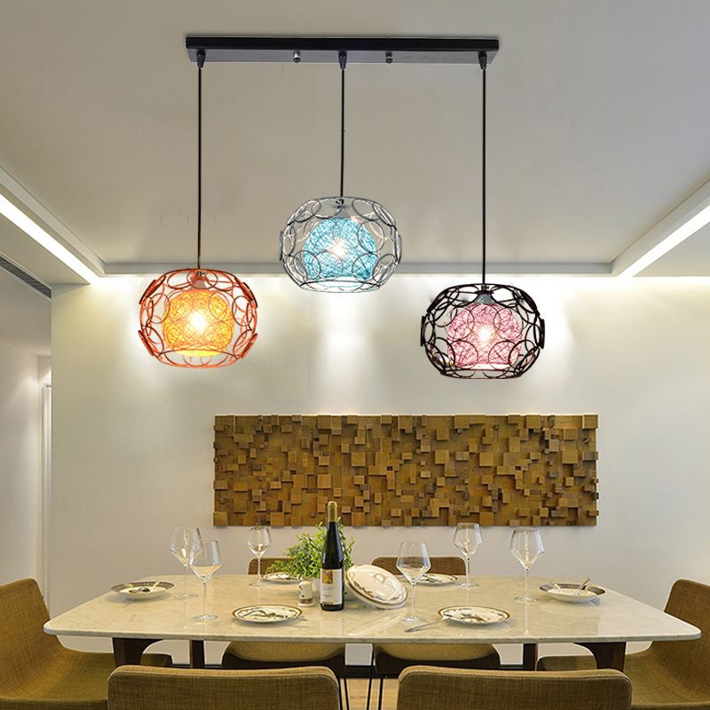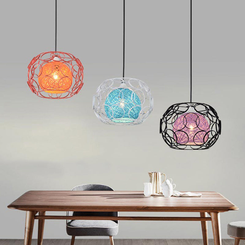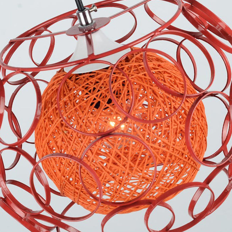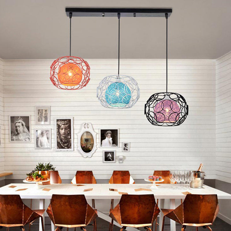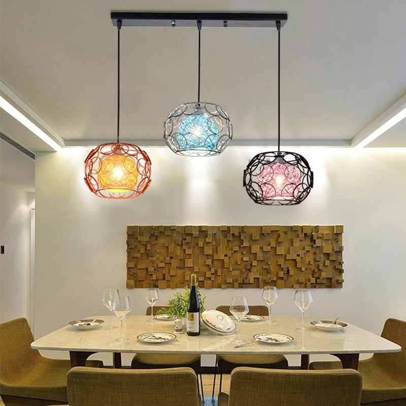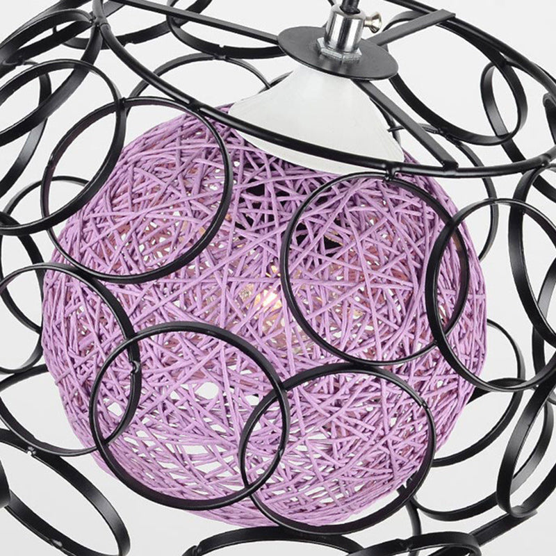 現代的なスカンジナビア風の籐編みアイアンサークルボール1/3ライトペンダントライト(ダイニングルーム用)