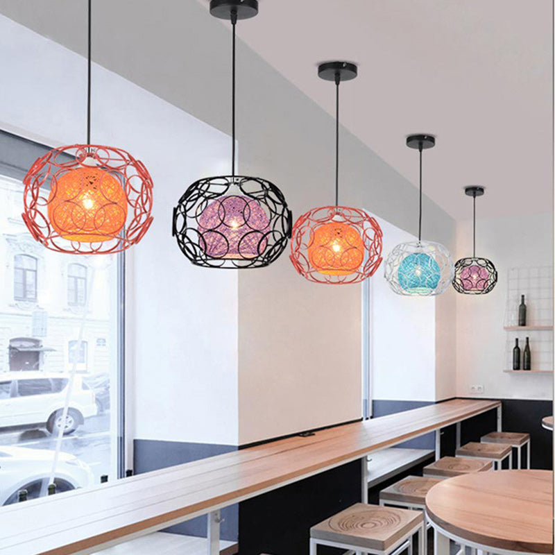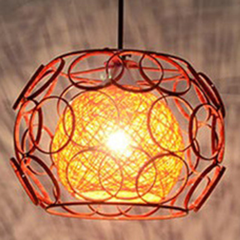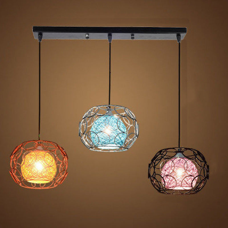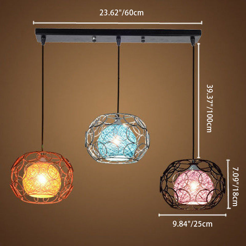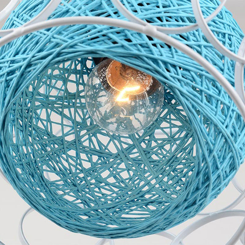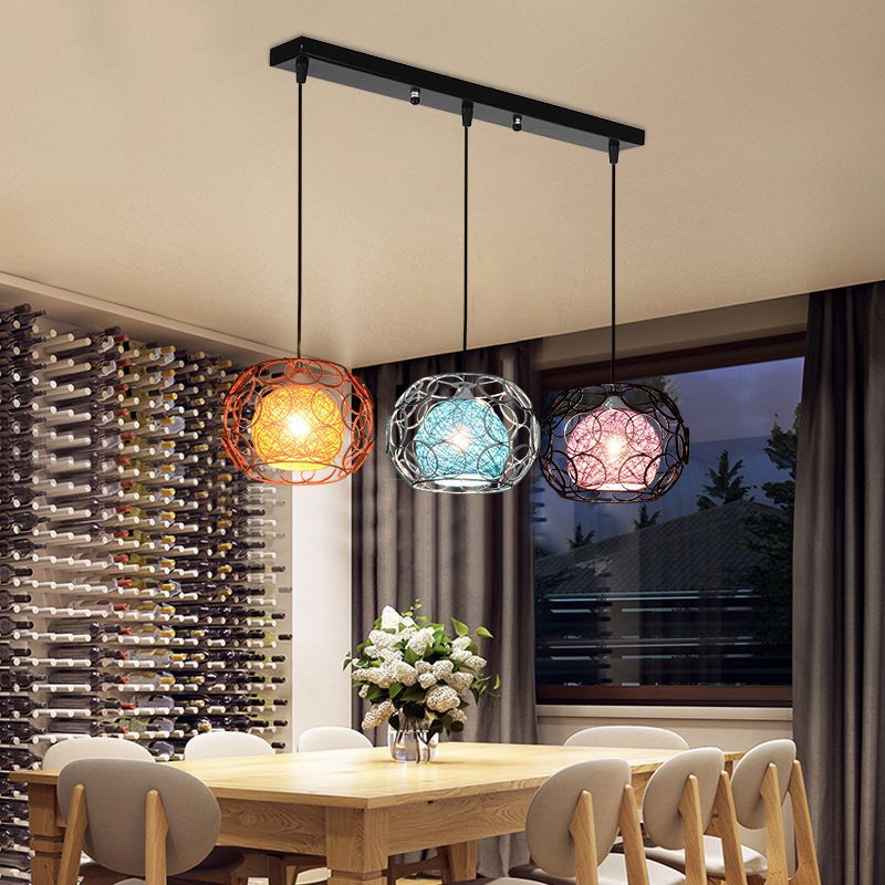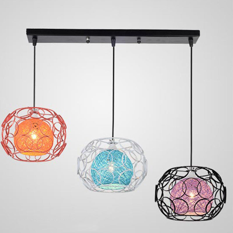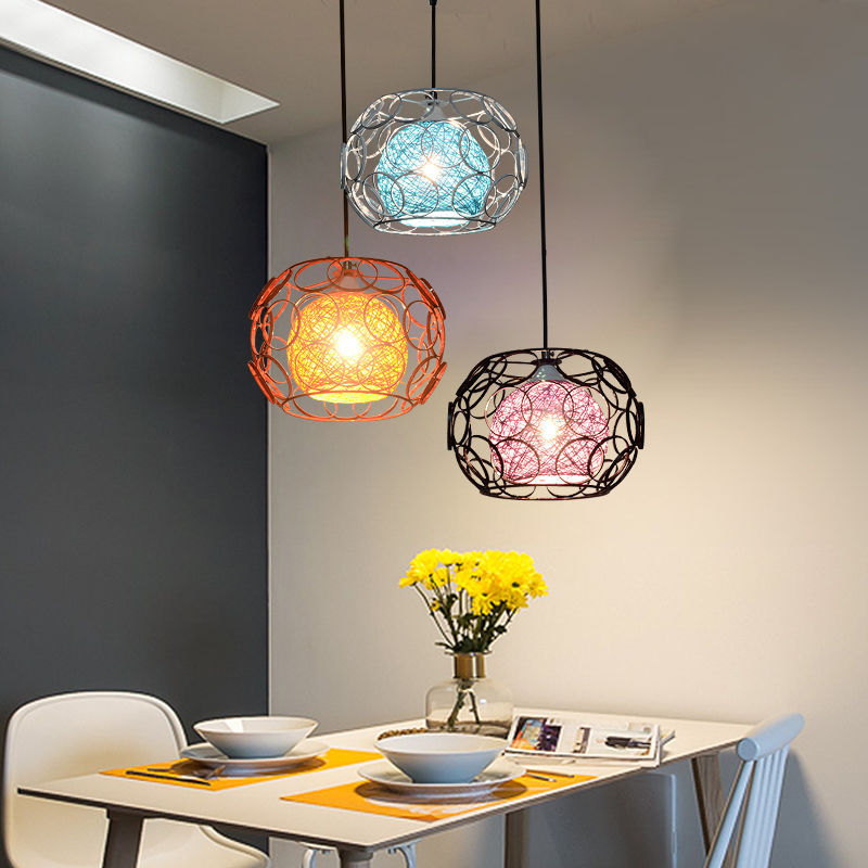現代的なスカンジナビア風の籐編みアイアンサークルボール1/3ライトペンダントライト(ダイニングルーム用)