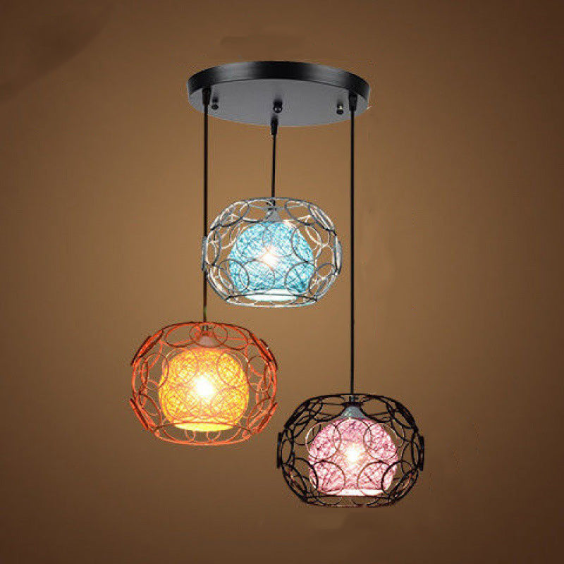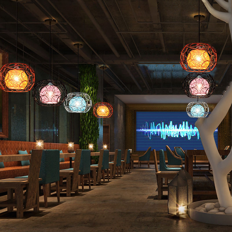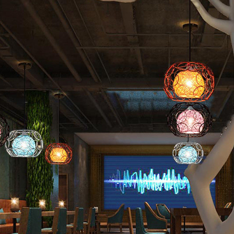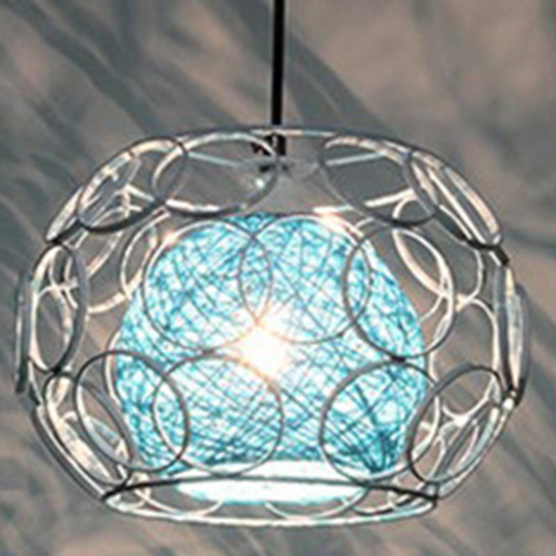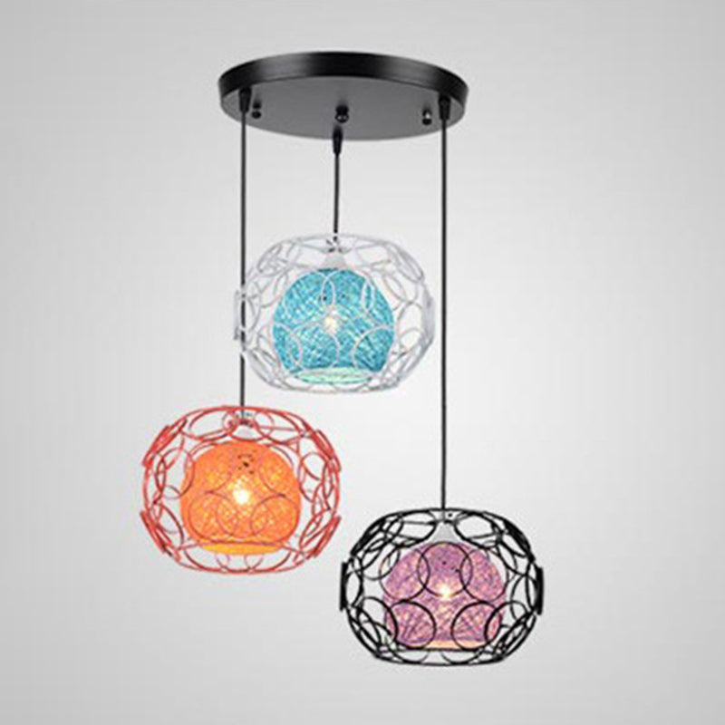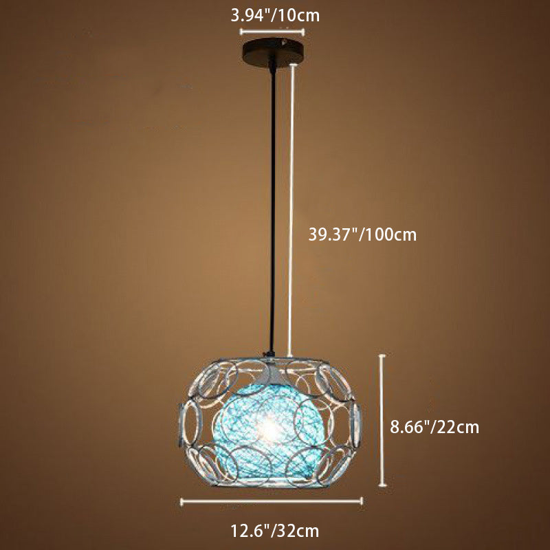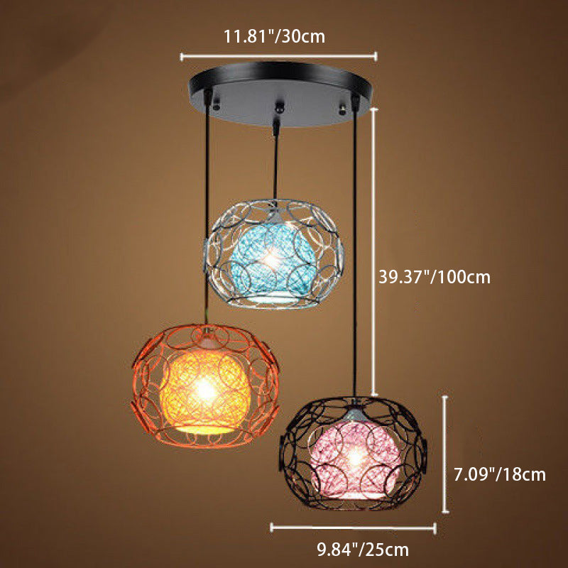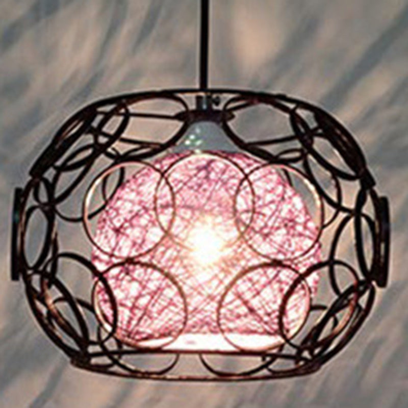 現代的なスカンジナビア風の籐編みアイアンサークルボール1/3ライトペンダントライト(ダイニングルーム用)