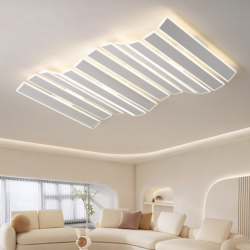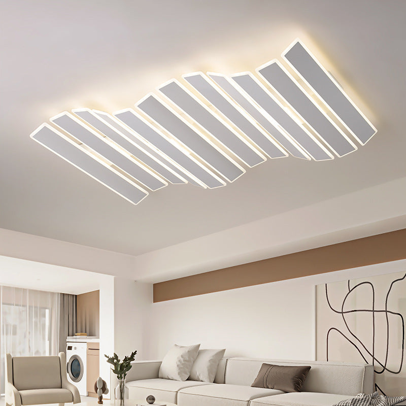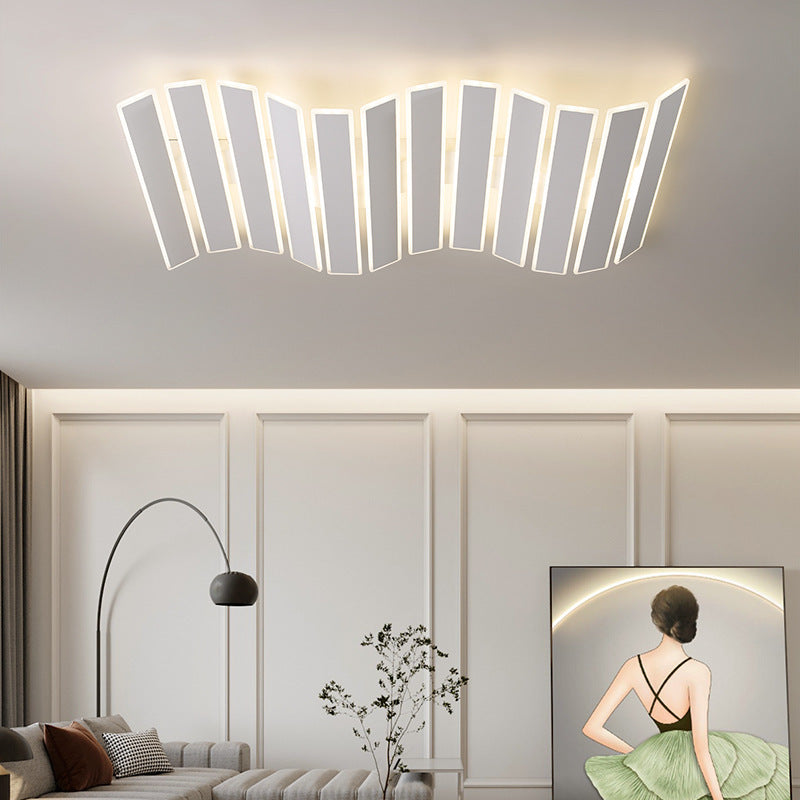 現代的なシンプルさを演出するアクリル製ストライプ模様の魚の骨型LEDフラッシュマウントシーリングライト(リビングルーム用)