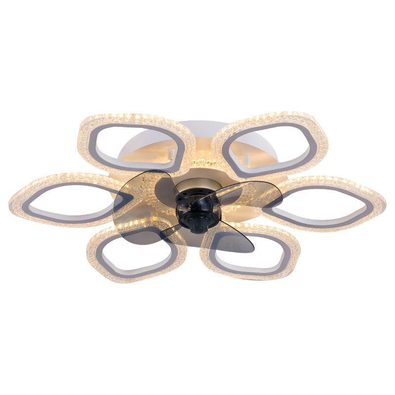 現代的なシンプルさを演出するハードウェアフラワーアクリルLEDセミフラッシュマウントシーリングファンライト寝室用