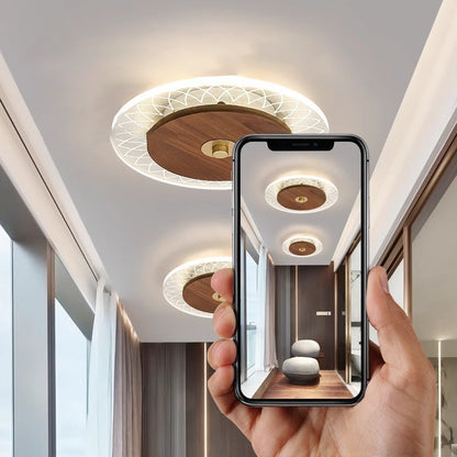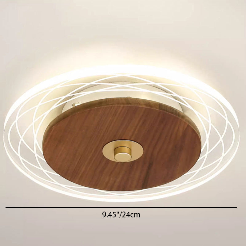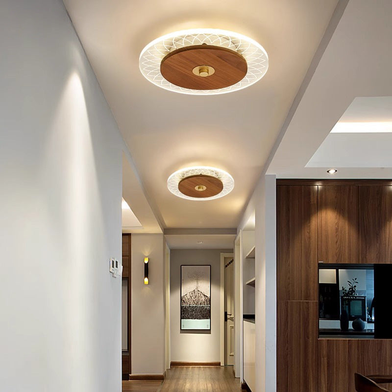 寝室用、現代的なシンプルさを追求した無垢材アクリル製ラウンドLEDフラッシュマウントシーリングライト