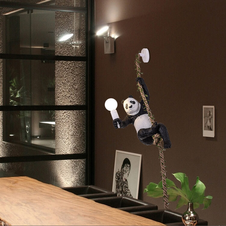 クリエイティブな樹脂パンダ麻ロープ1灯ペンダントライト