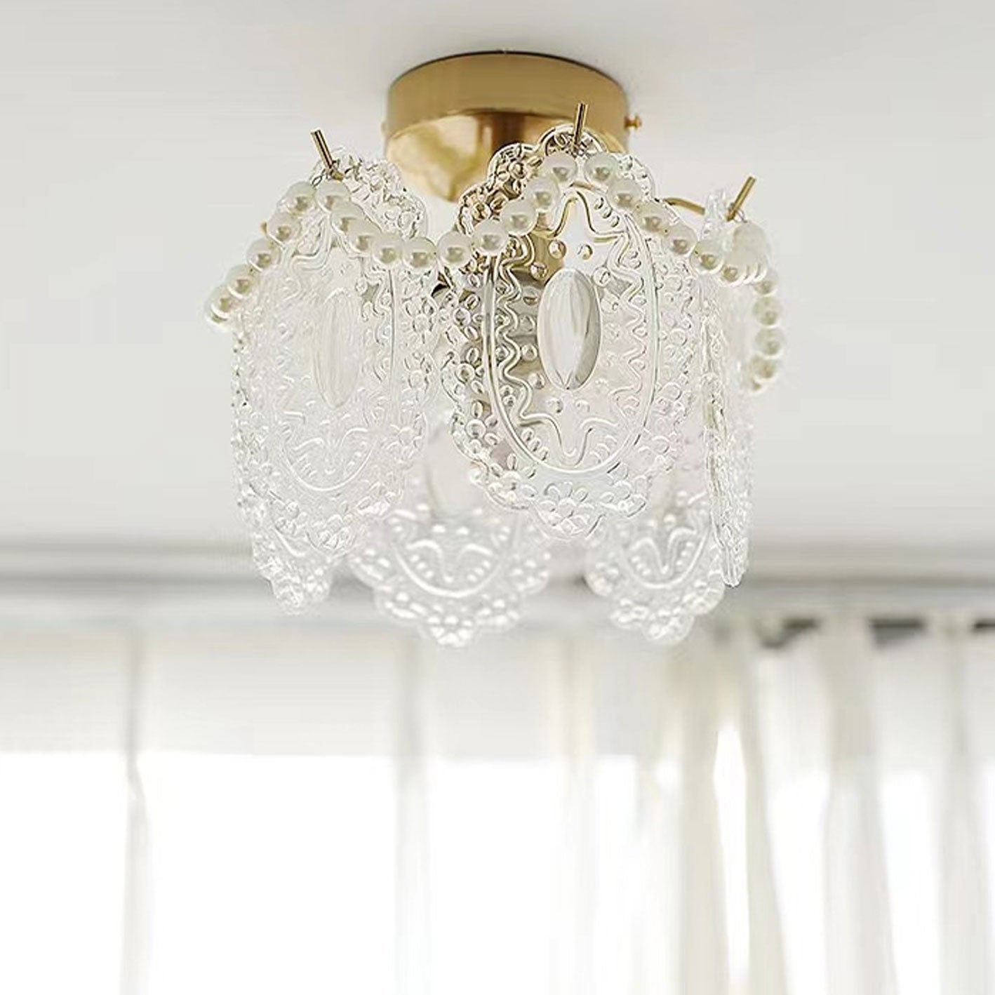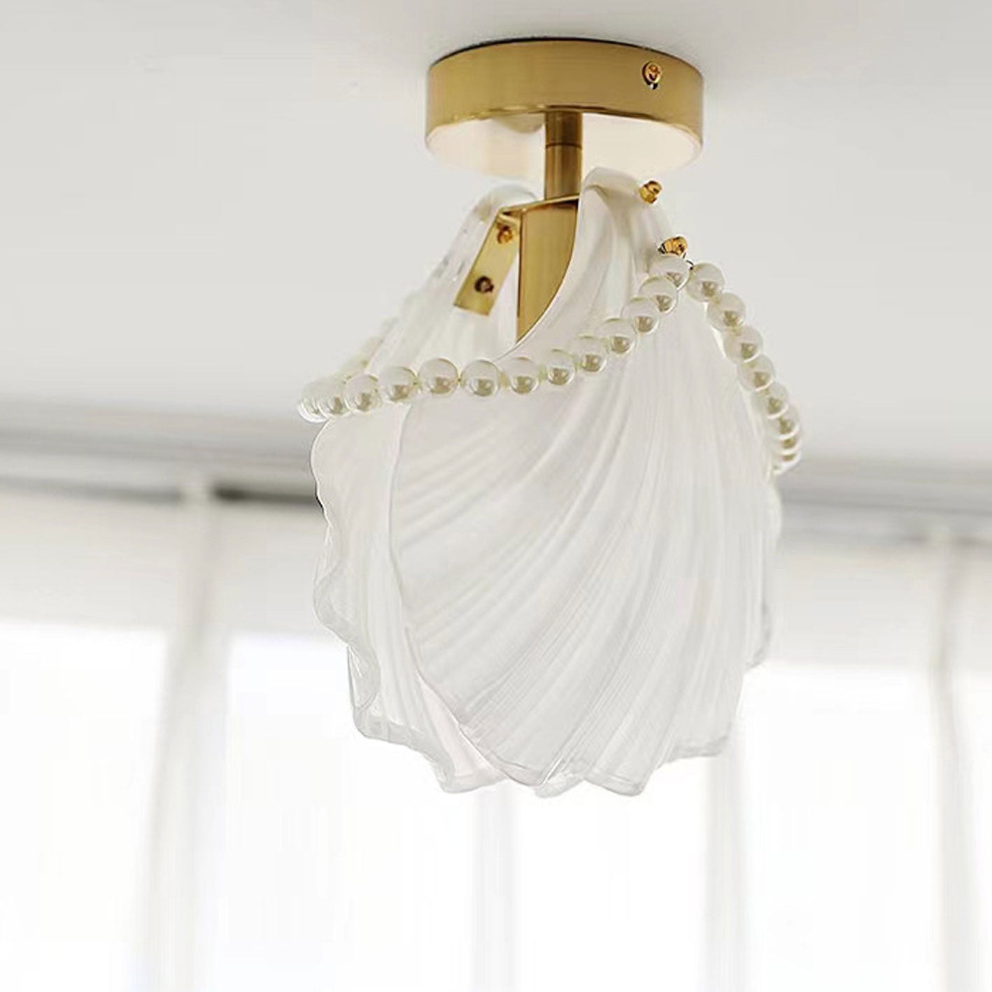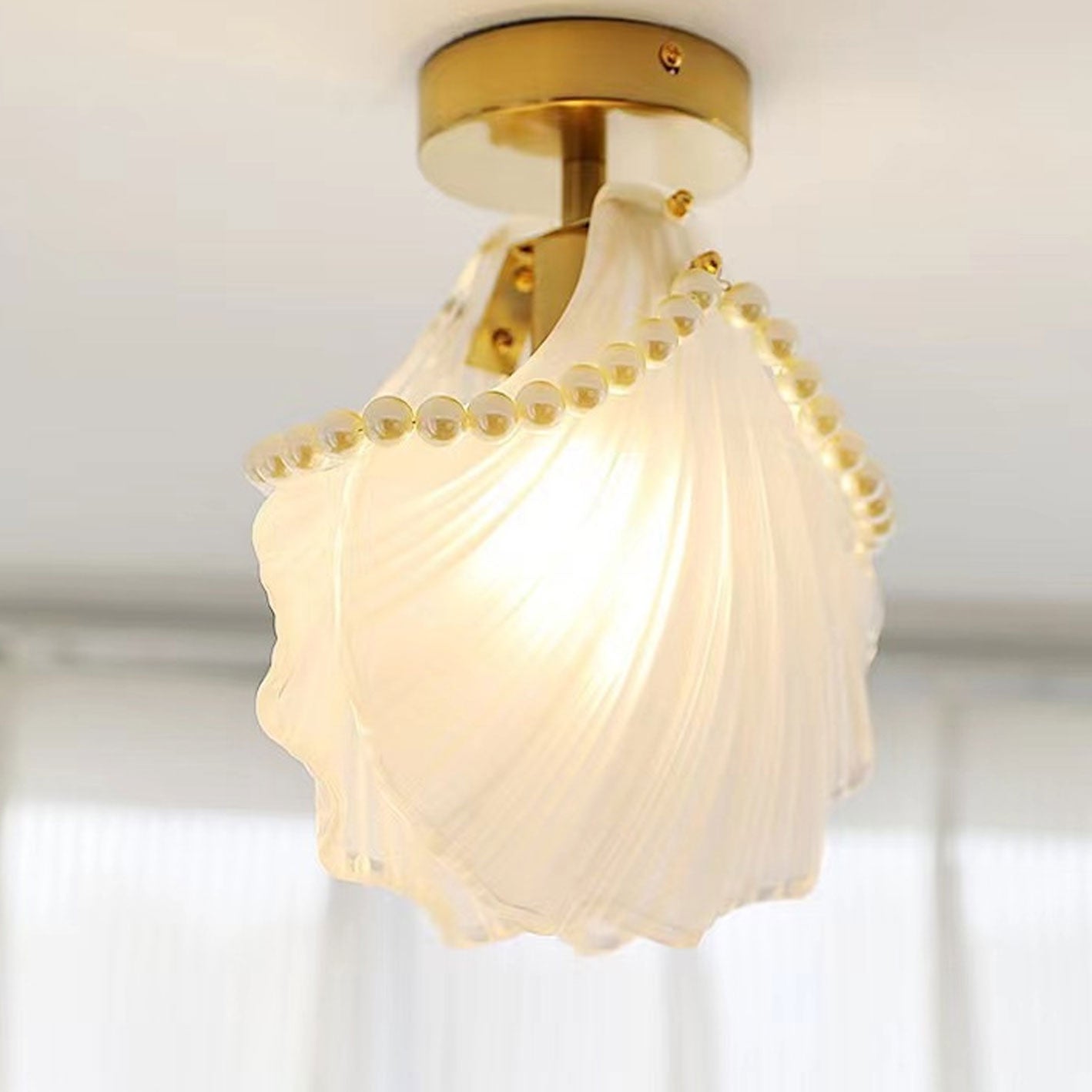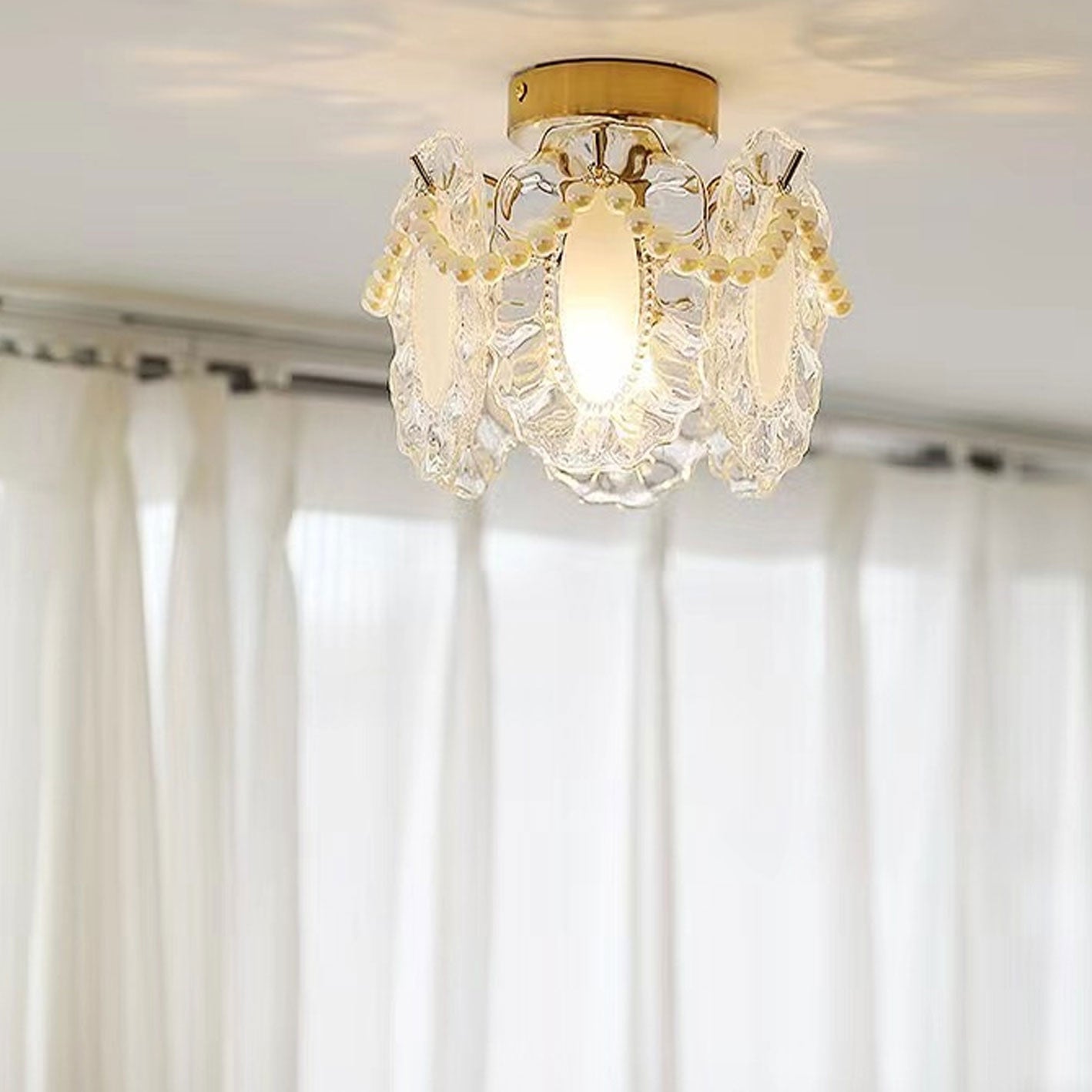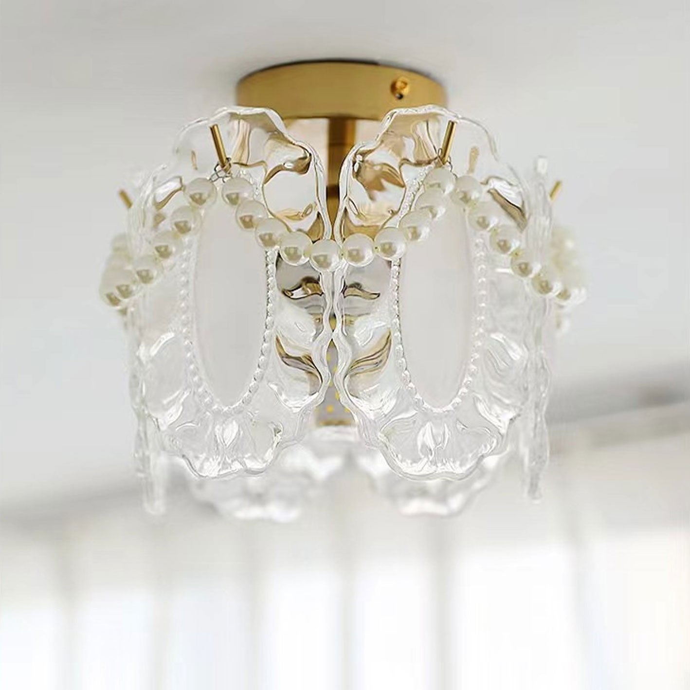 フレンチライト ラグジュアリー ペタルパールガラス 1灯 フラッシュマウント シーリングライト