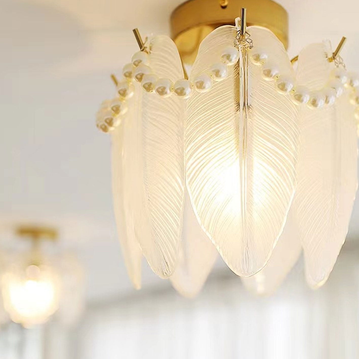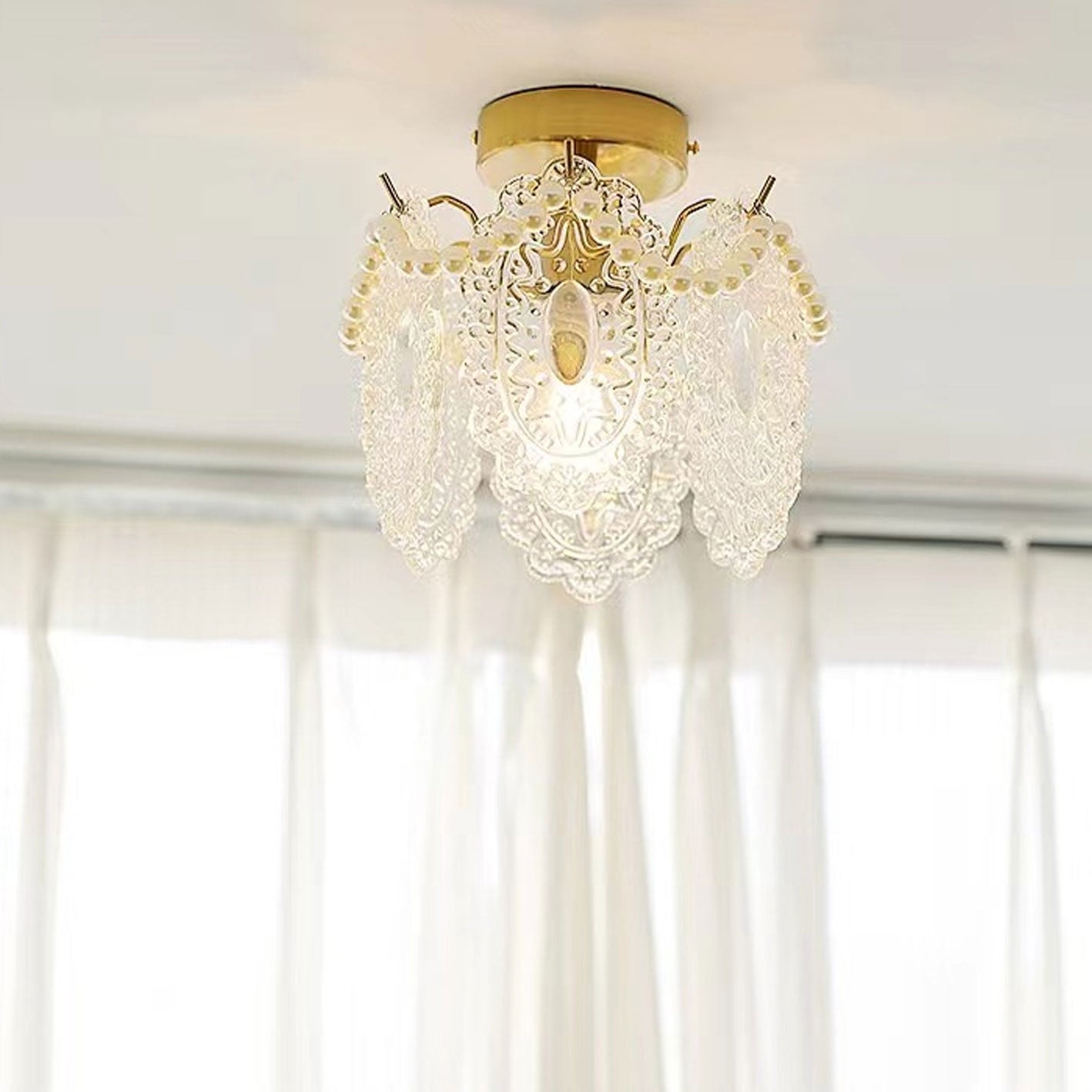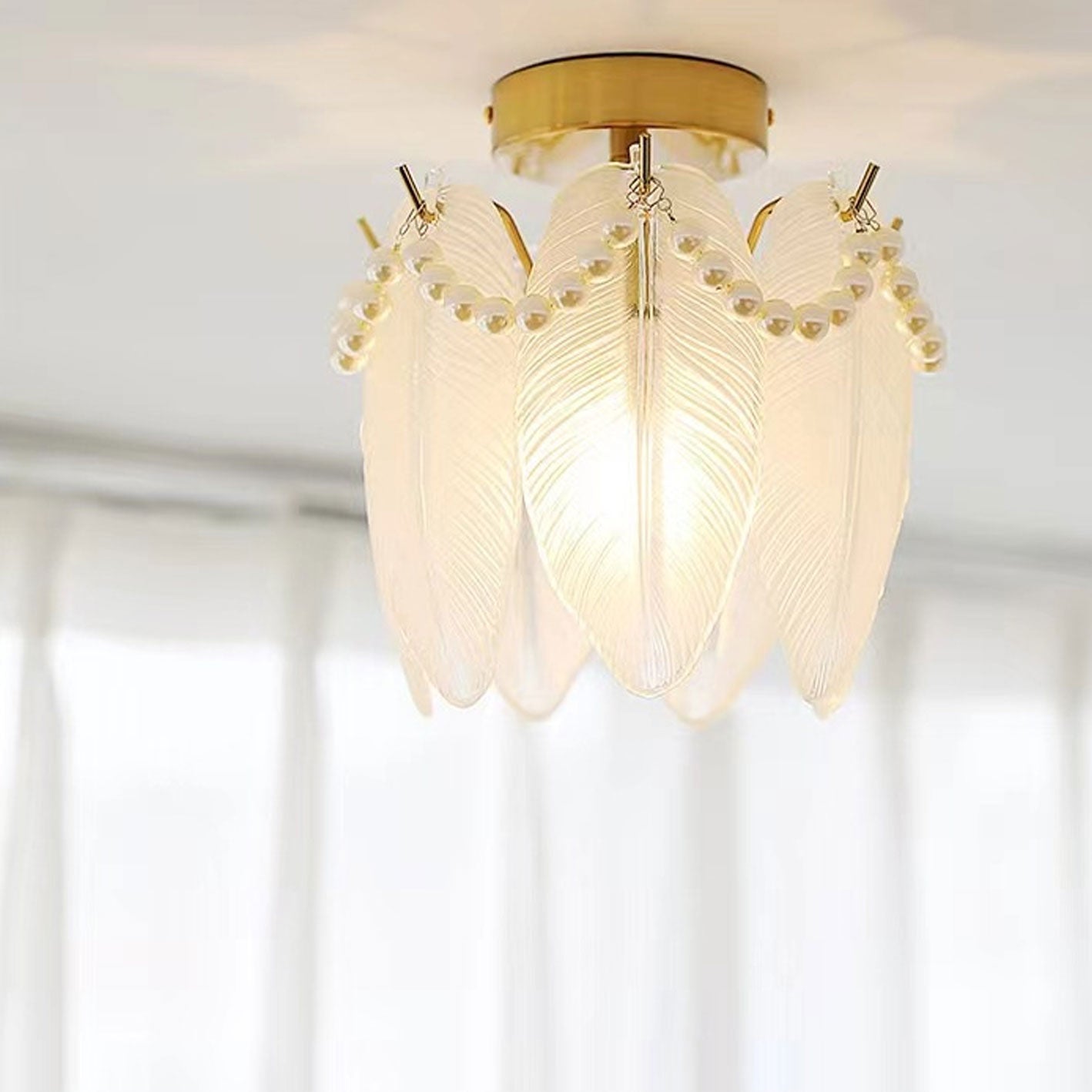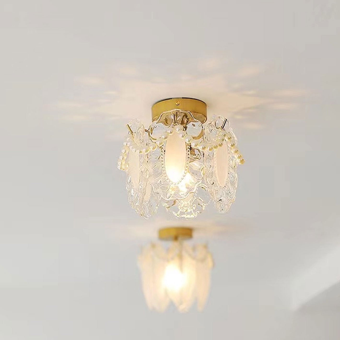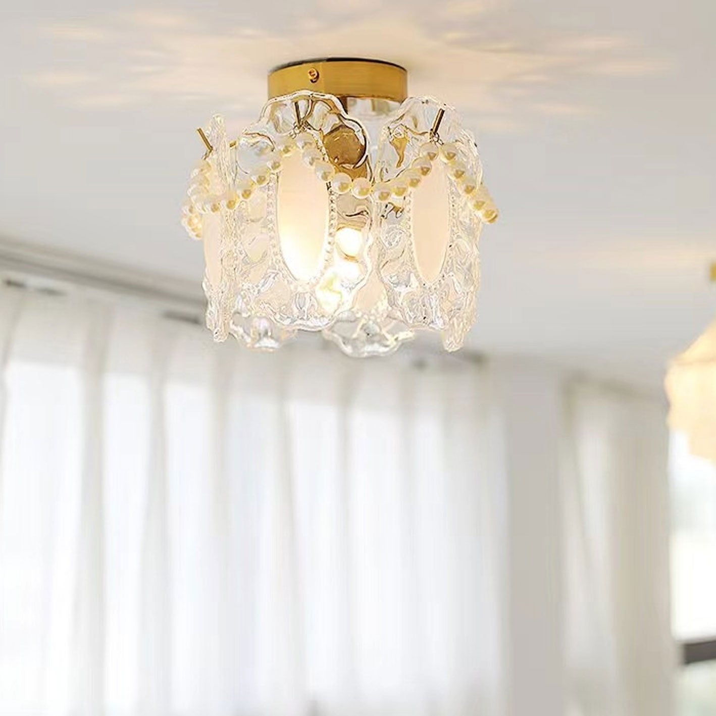 フレンチライト ラグジュアリー ペタルパールガラス 1灯 フラッシュマウント シーリングライト