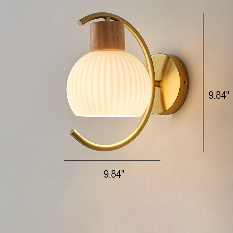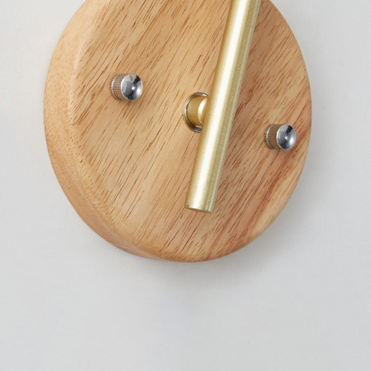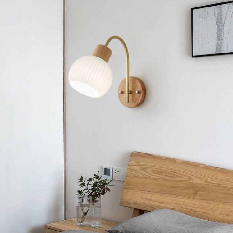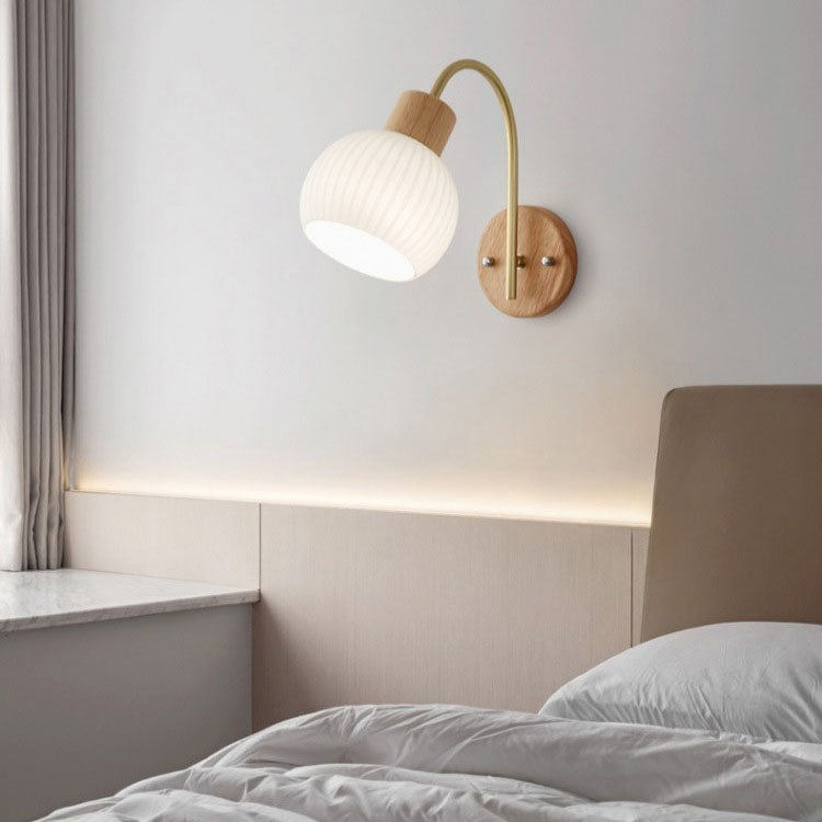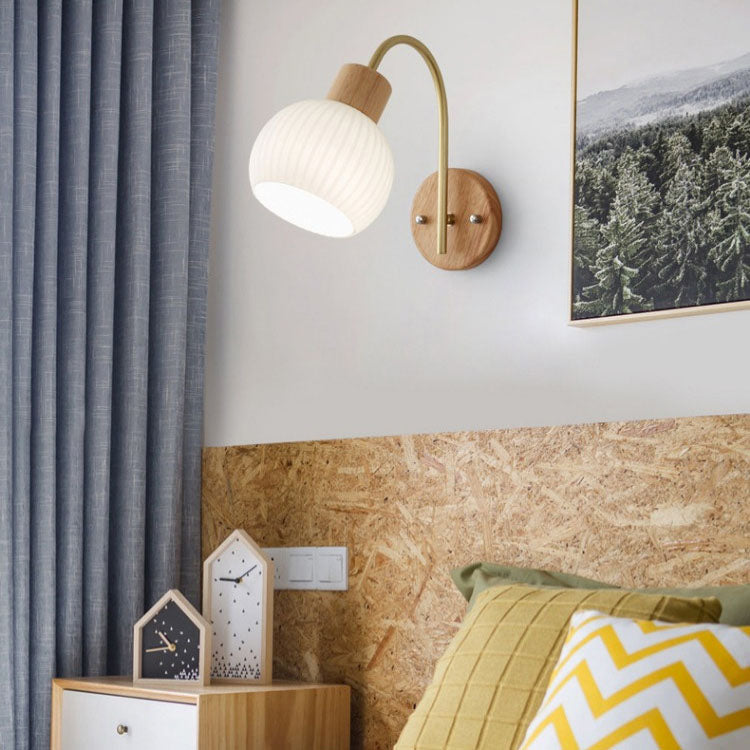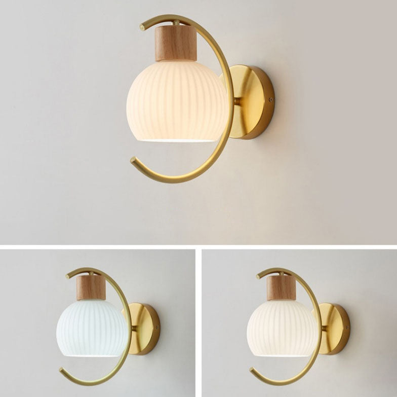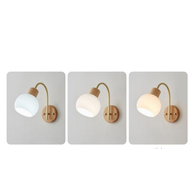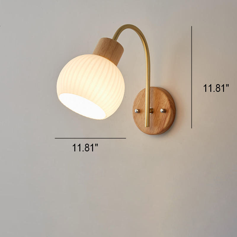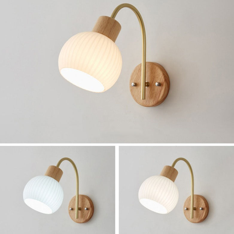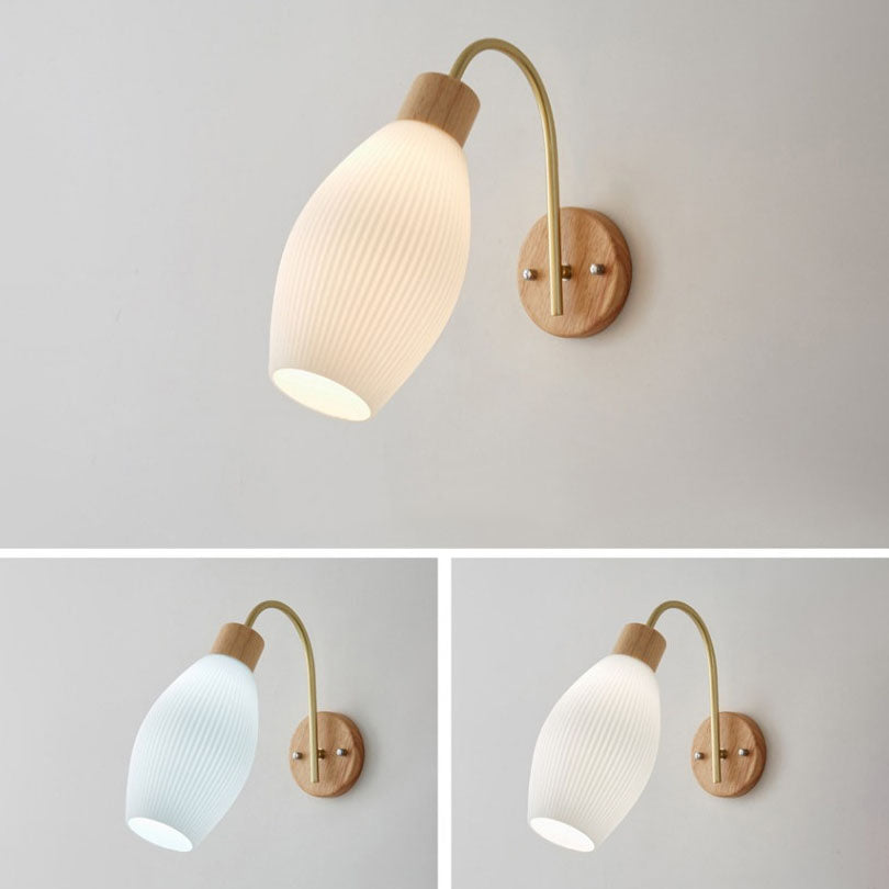 日本製ミニマリストラウンド無垢材ストライプガラス1灯壁付け燭台ランプ