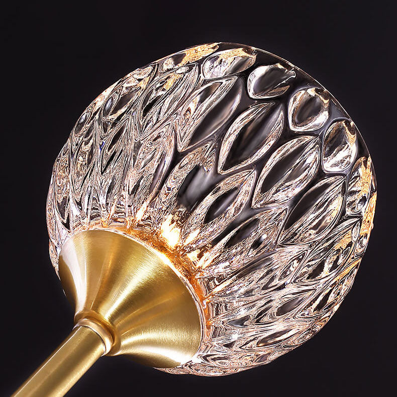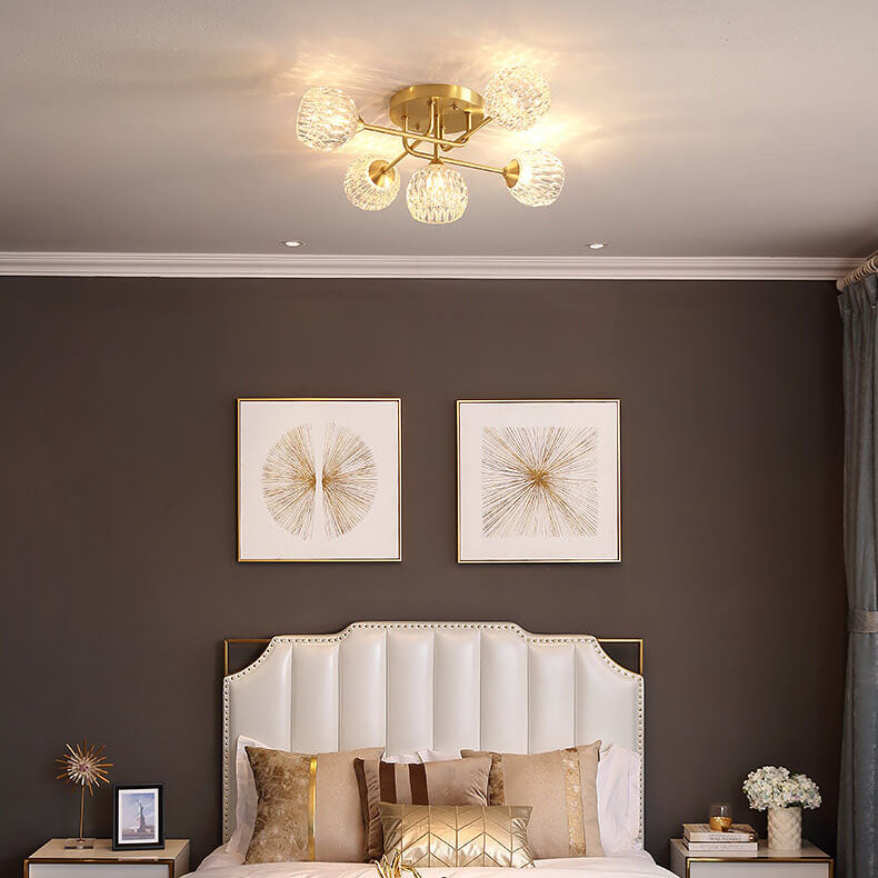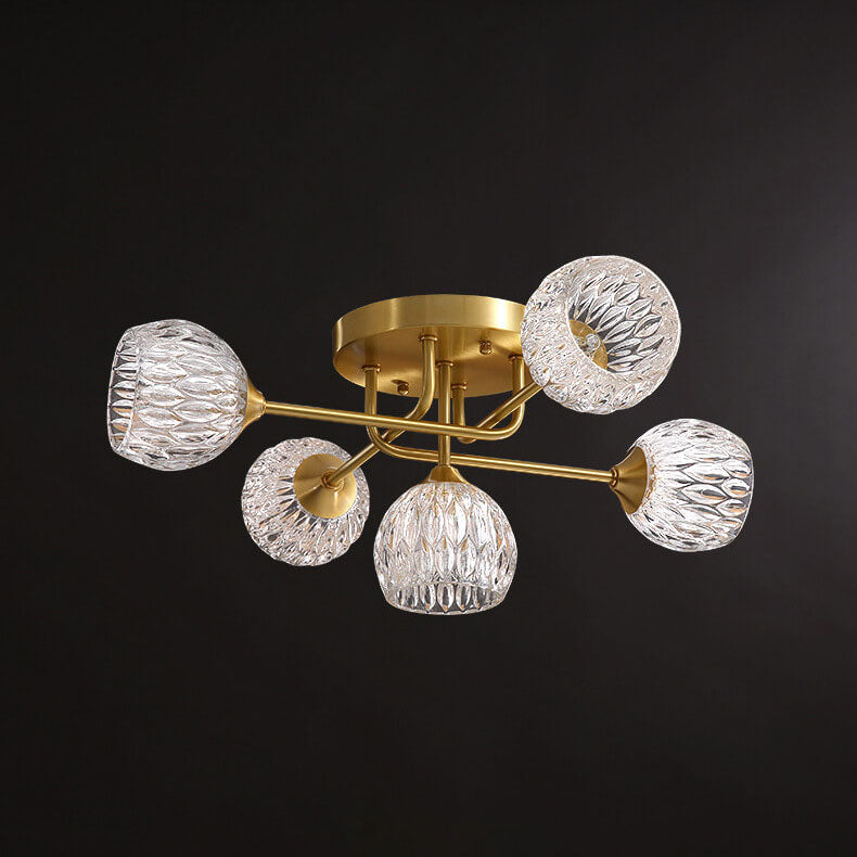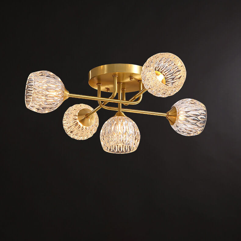 ミッドセンチュリーモダンラウンド銅クリスタルガラス5灯セミフラッシュマウントシーリングライト