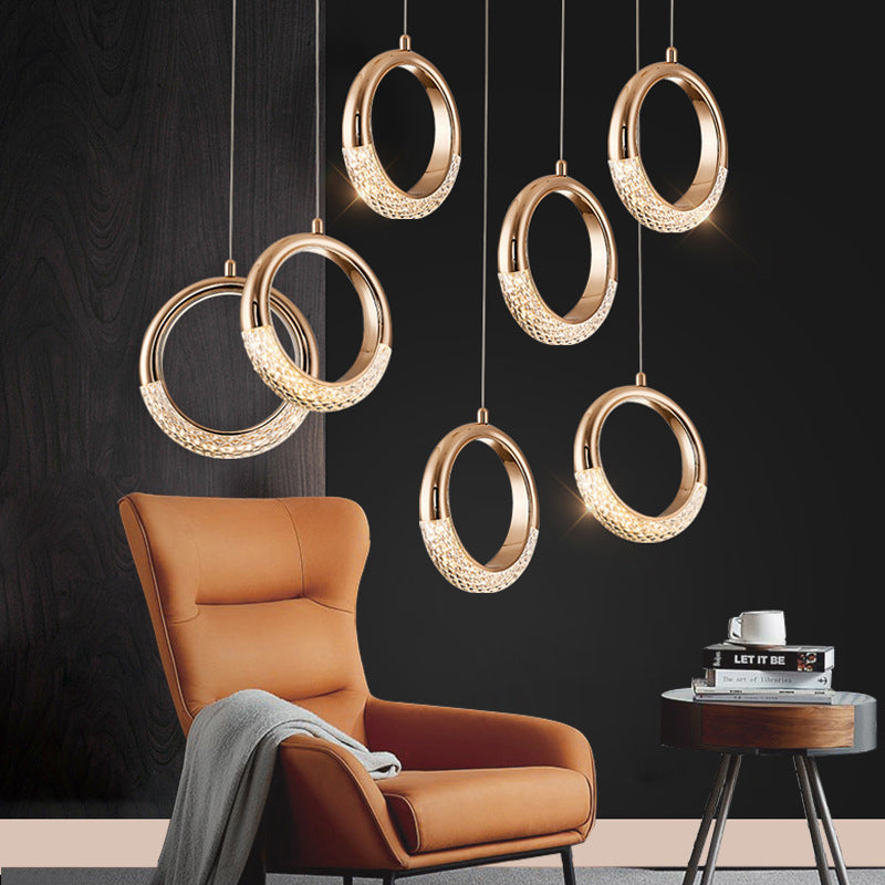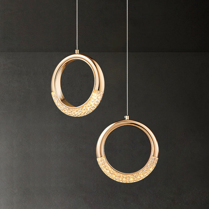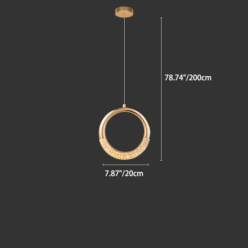 モダンなアクリル製幾何学模様の円形1灯LEDペンダントライト