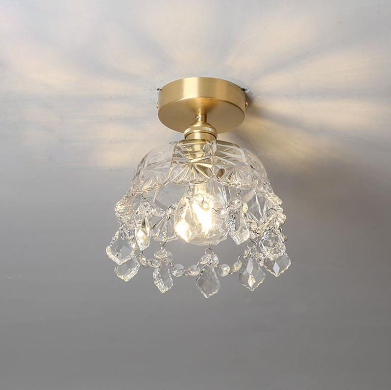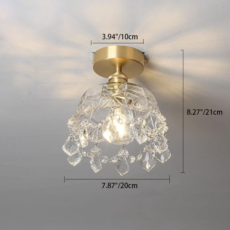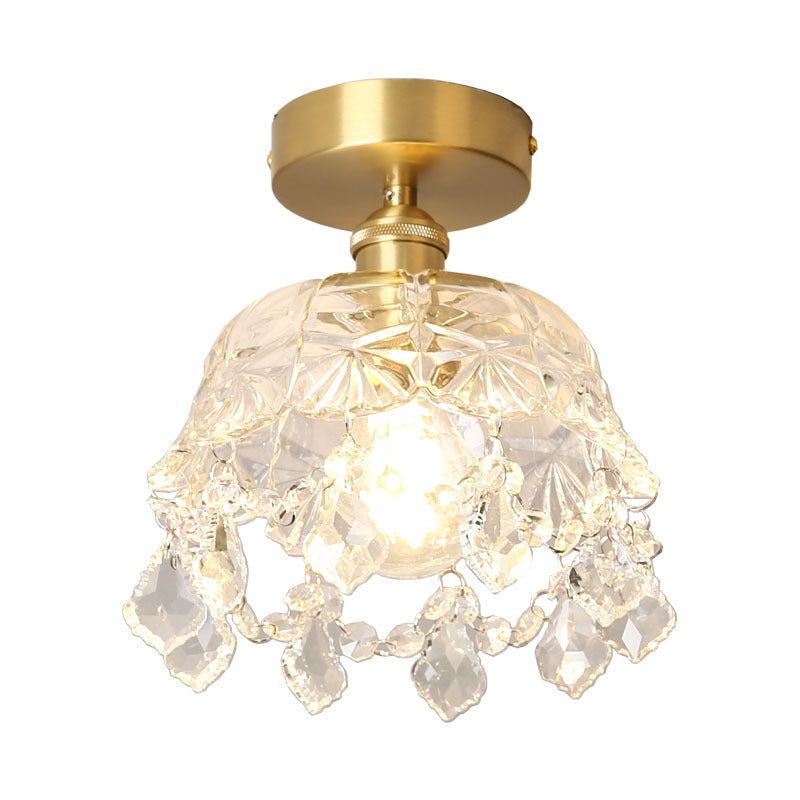 モダンアールデコ調真鍮フレームクリスタルラウンドガラスシェード1灯セミフラッシュマウントシーリングライトリビングルーム用