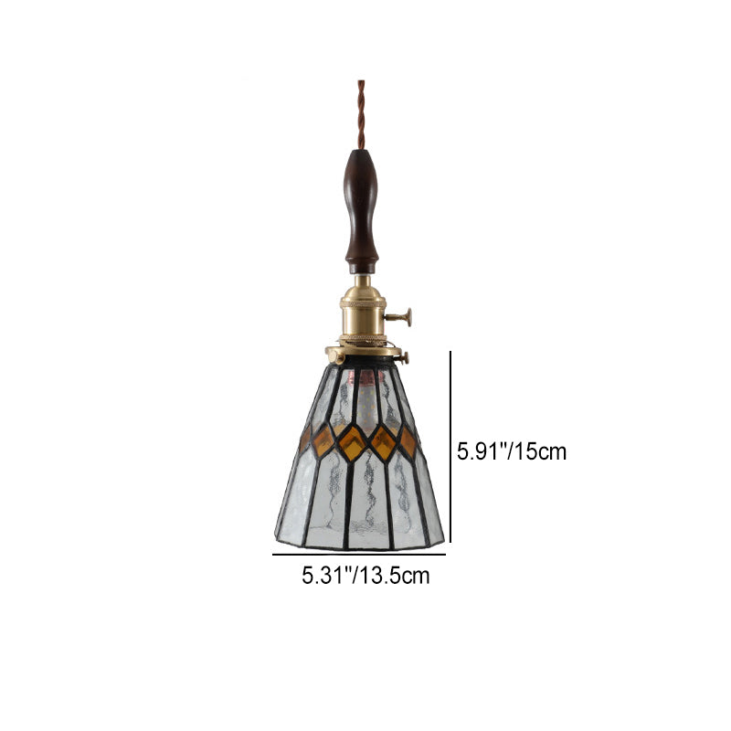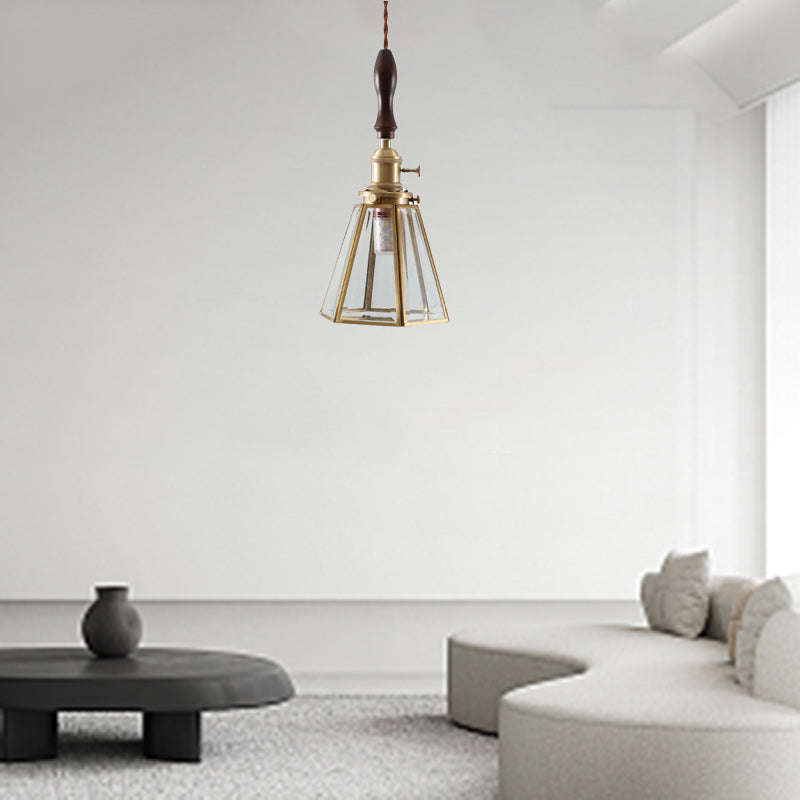 モダンアールデコ コーンプリズム銅ガラス 1灯ペンダントライト 寝室用