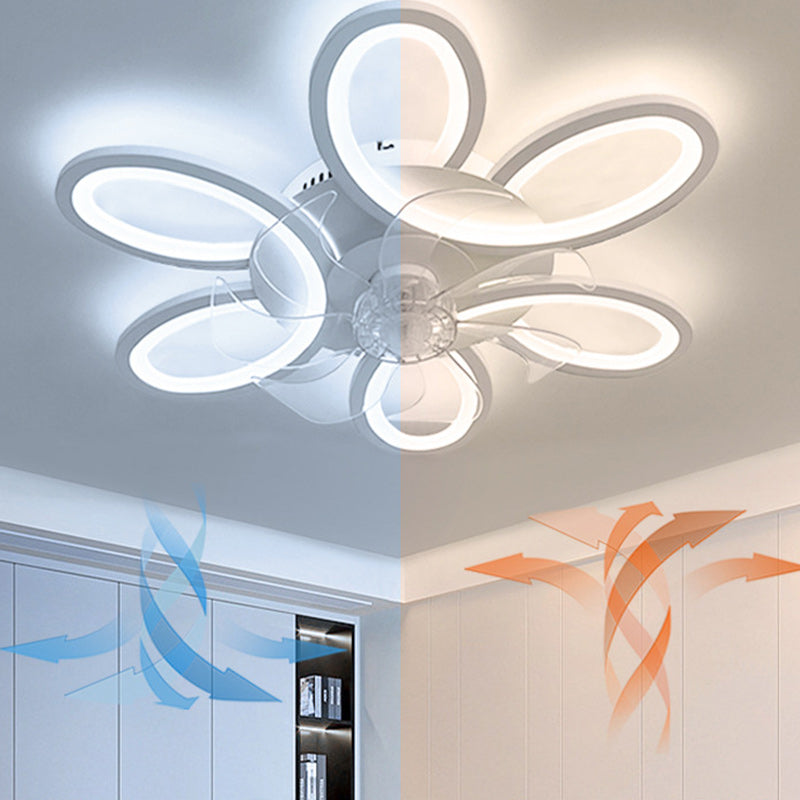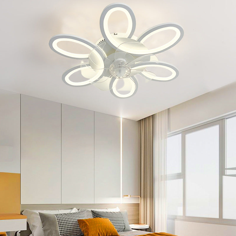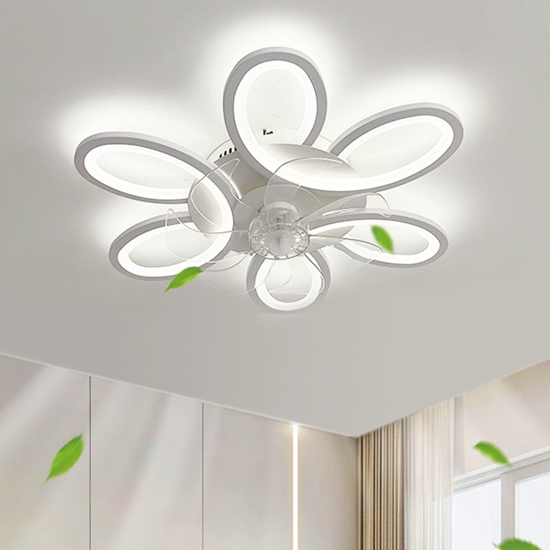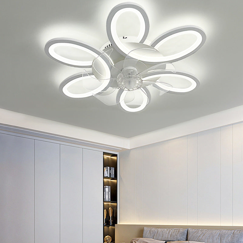 モダンアールデコ調フラワーラウンドアイアンアクリルLEDフラッシュマウントシーリングファンライト寝室用