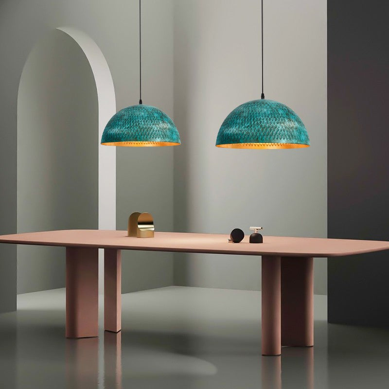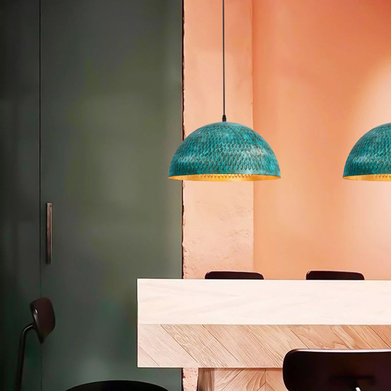 モダンアールデコ調半球型アイアンペンダントライト(ダイニングルーム用)1灯