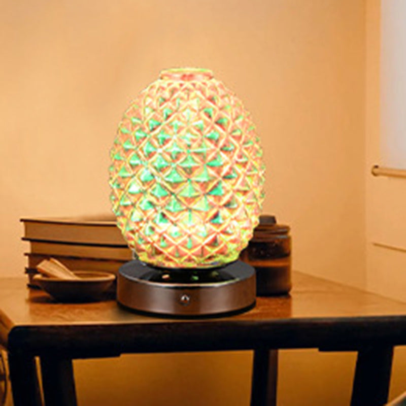 Modern Art Deco Rechargeable Glass & Metal Spherical Pineapple Ripple LED Table Lamp Night Light For Bedroom