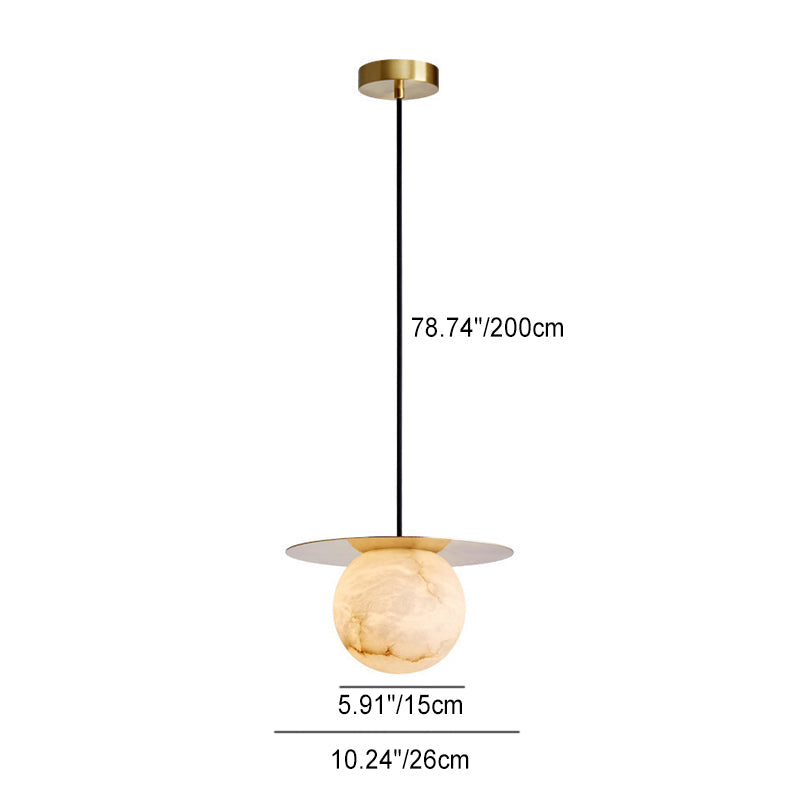 モダンアールデコ調ラウンド銅石1灯ペンダントライト(リビングルーム用)