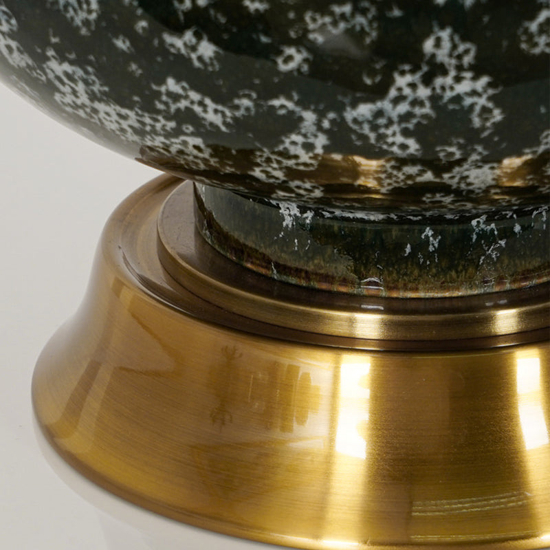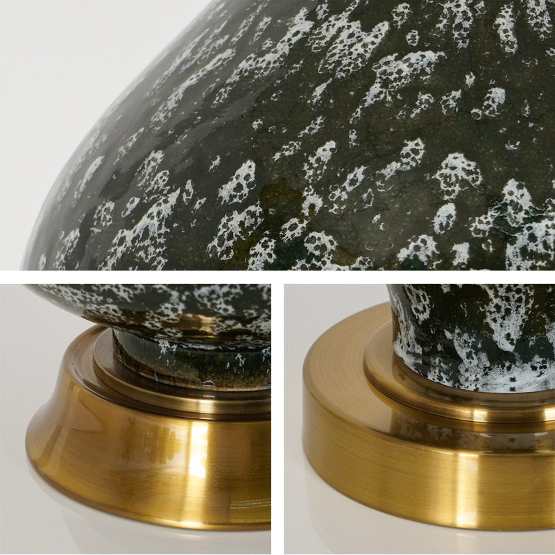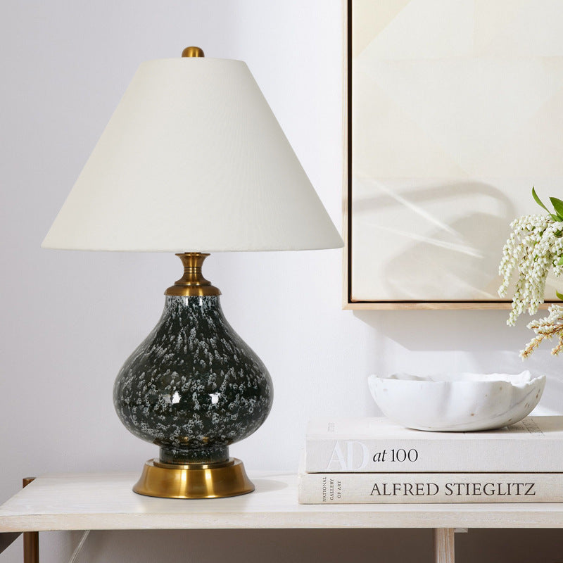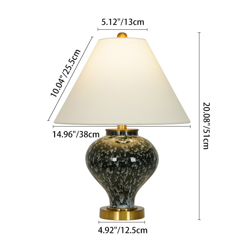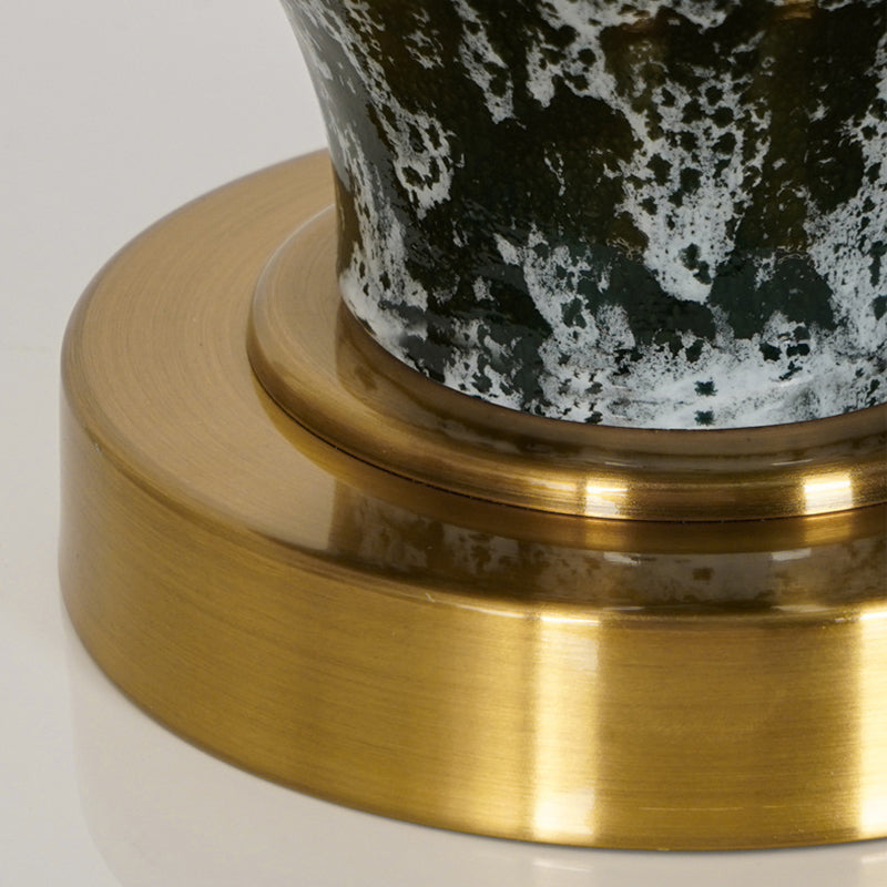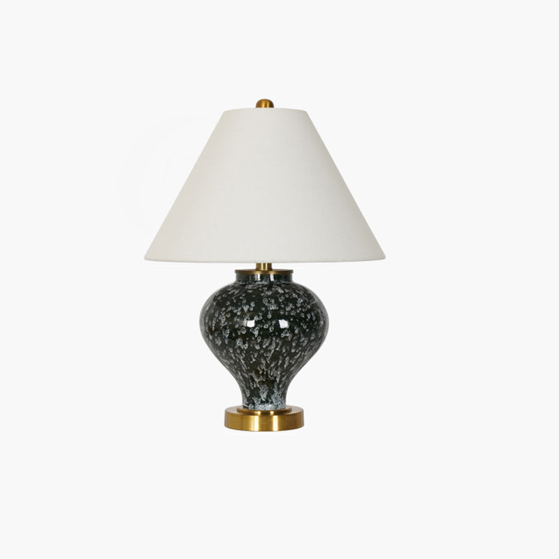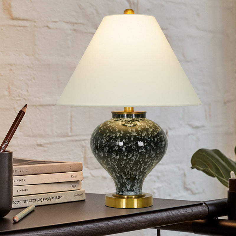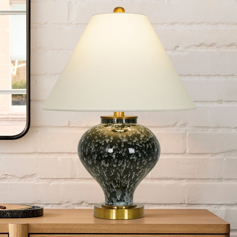 モダンアールデコ調テーパードファブリックシェードセラミックメタルベース1灯テーブルランプ寝室用