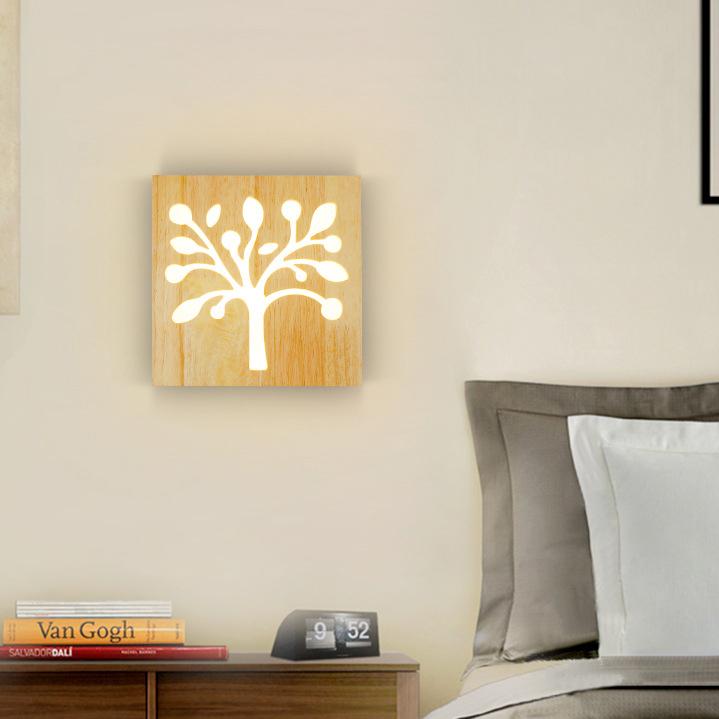 モダンでクリエイティブな無垢材のハッピーツリー&アントラー柄LEDウォールスコンスランプ