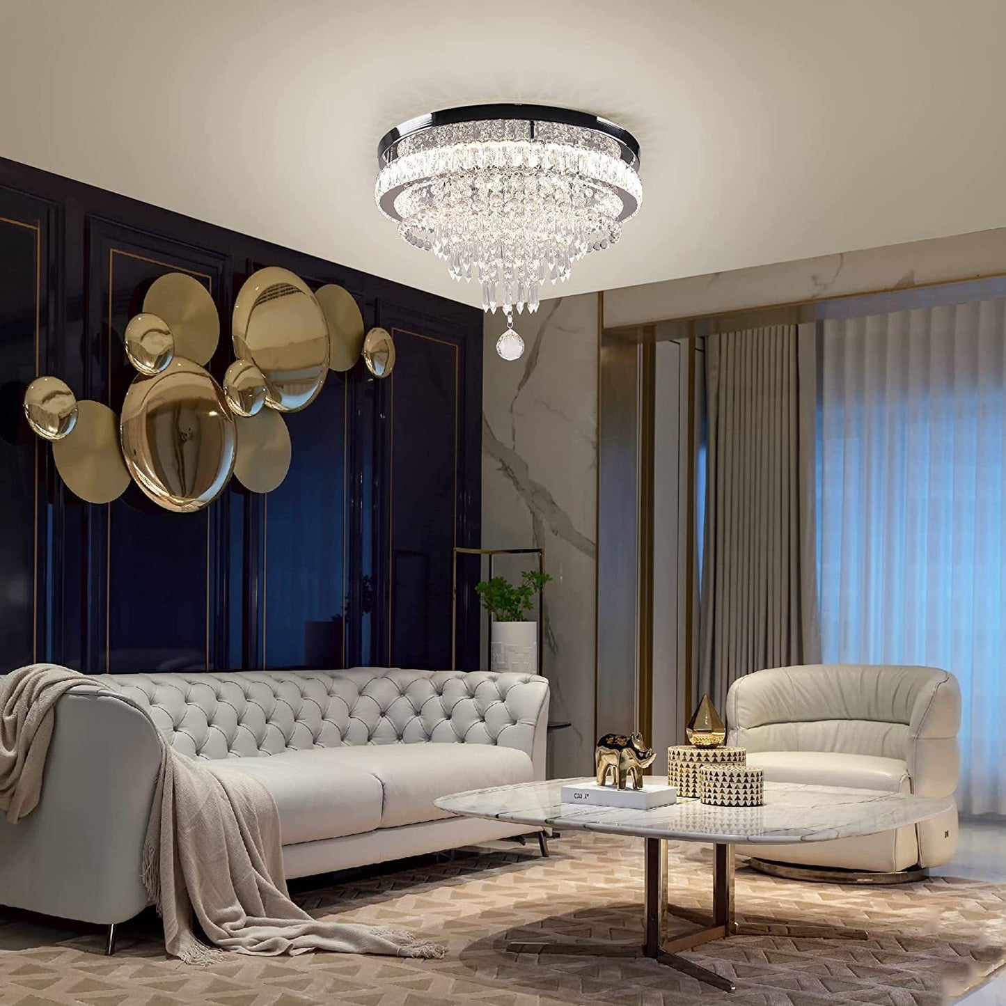モダンライト 高級クリスタル ラウンドタッセル LED フラッシュマウント シーリングライト