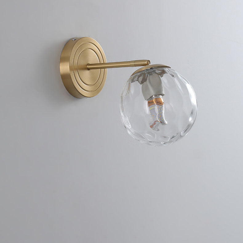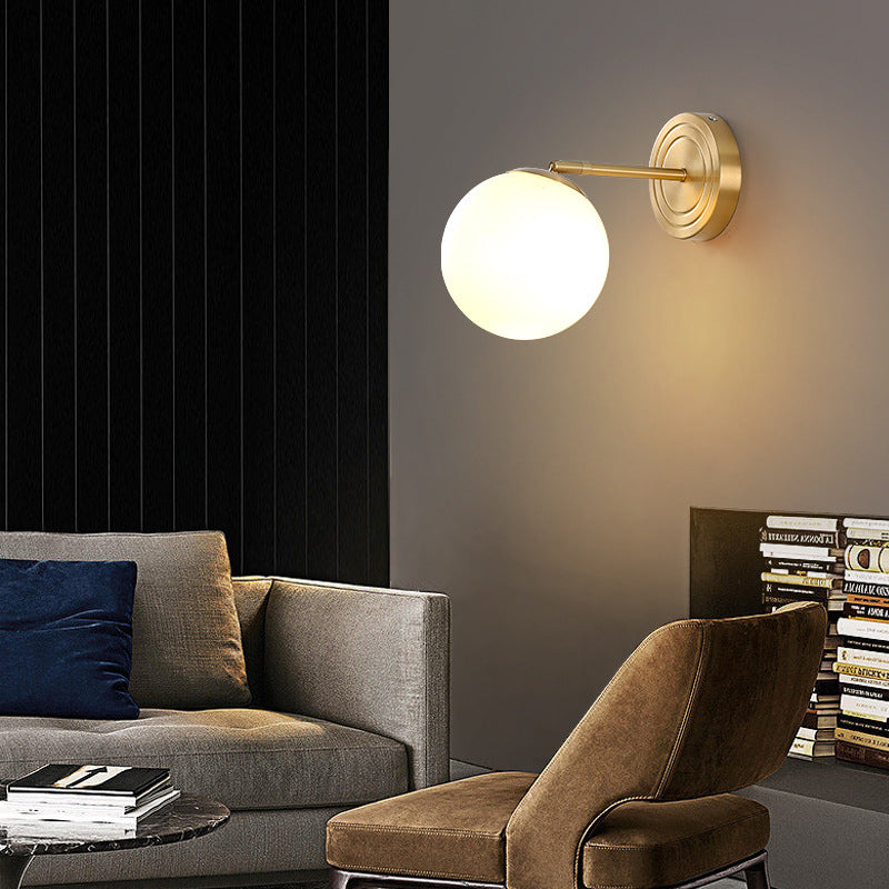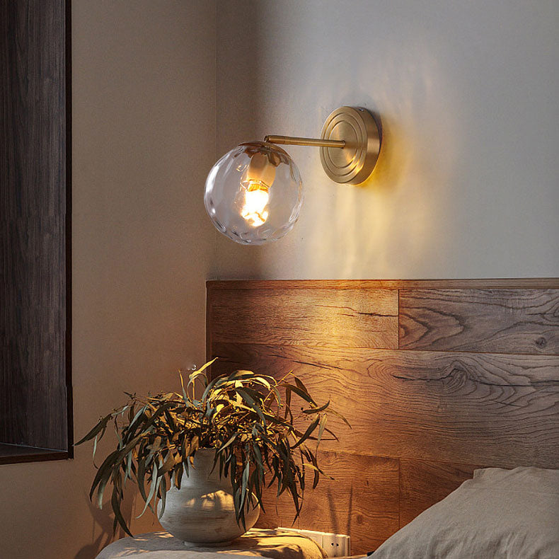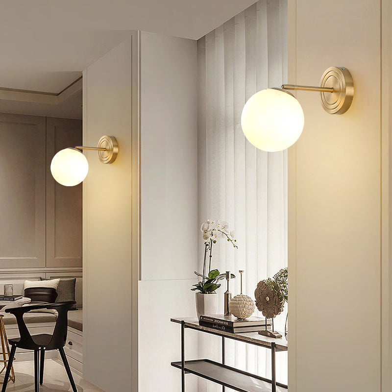 モダンライト 高級ガラスオーブ 真鍮ベース 1灯 壁付け照明
