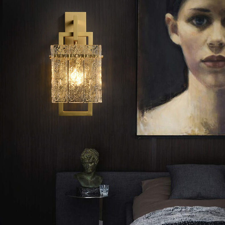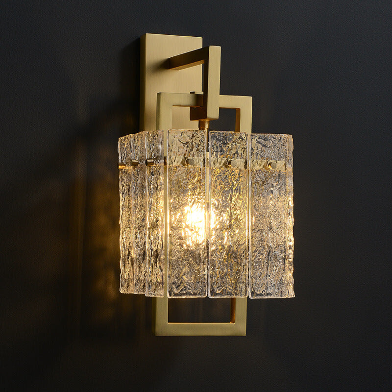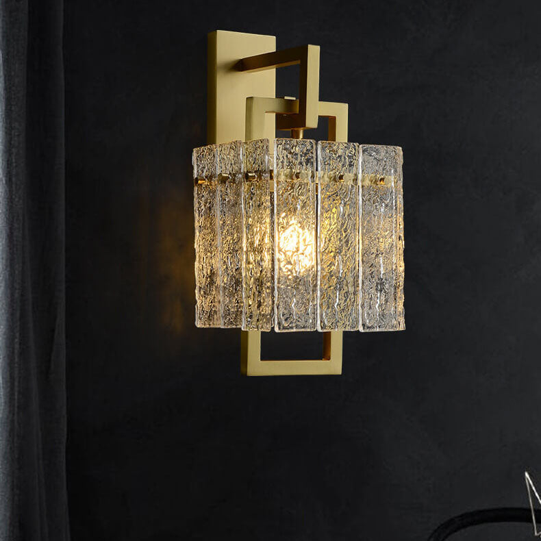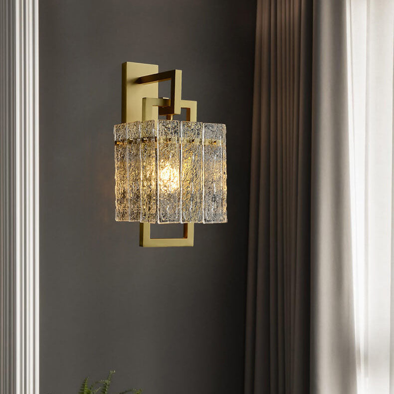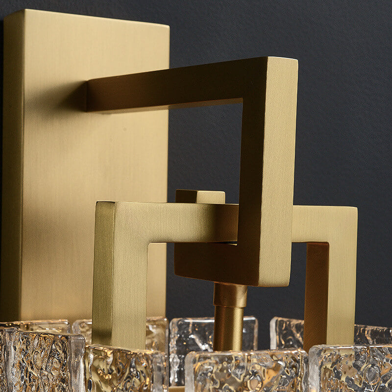 モダンライト 高級テクスチャードクリスタル真鍮スクエア 1灯壁取り付け用燭台ランプ