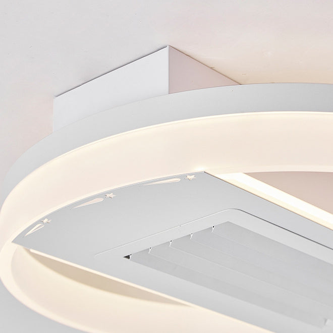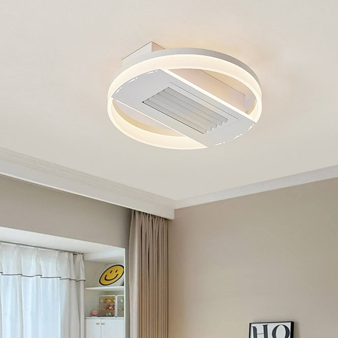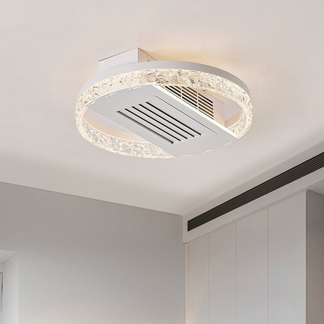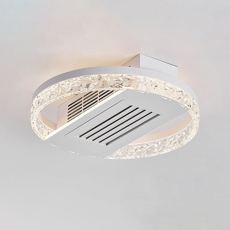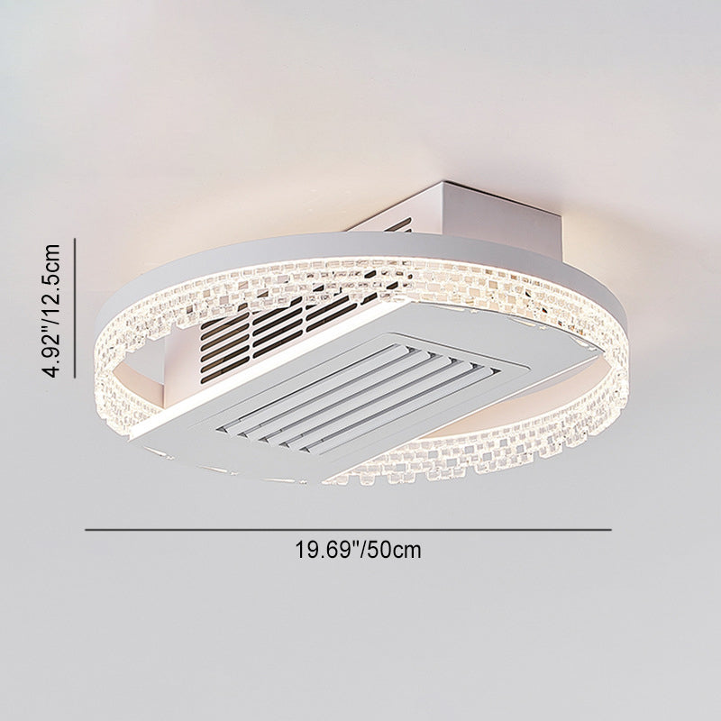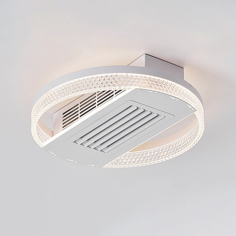 モダンで高級なアルミと鉄、アクリル製の丸型LEDセミフラッシュマウント式リーフレスシーリングファンライト(寝室用)