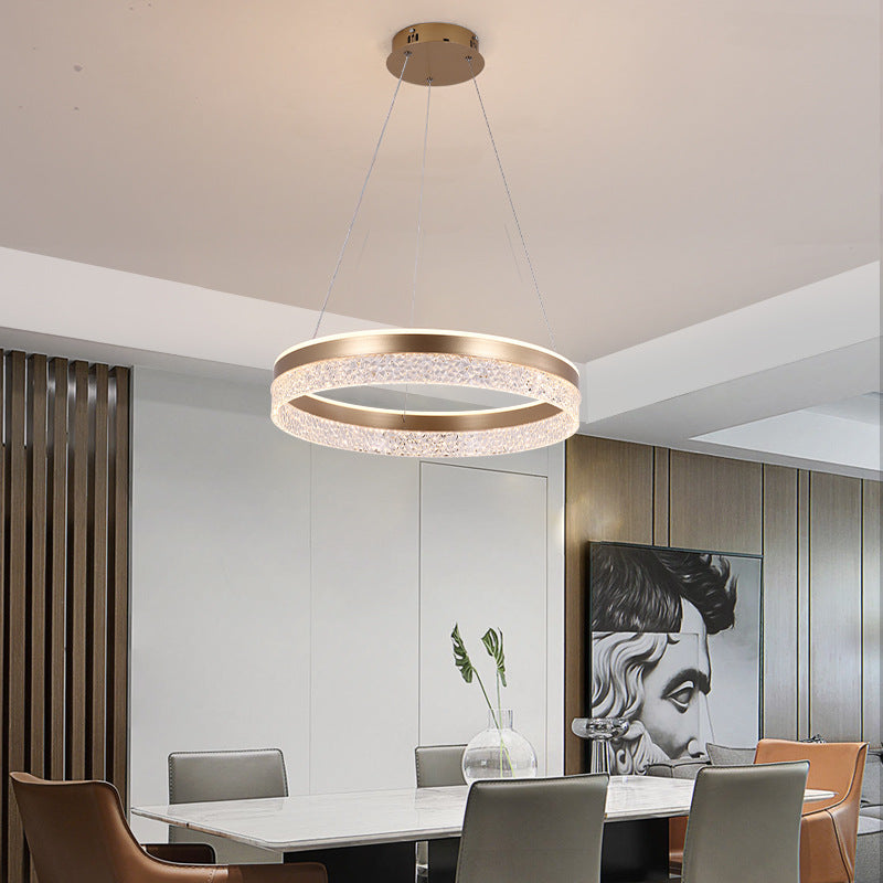 リビングルームに最適な、モダンで豪華な円形ハードウェアクリスタルLEDペンダントライト