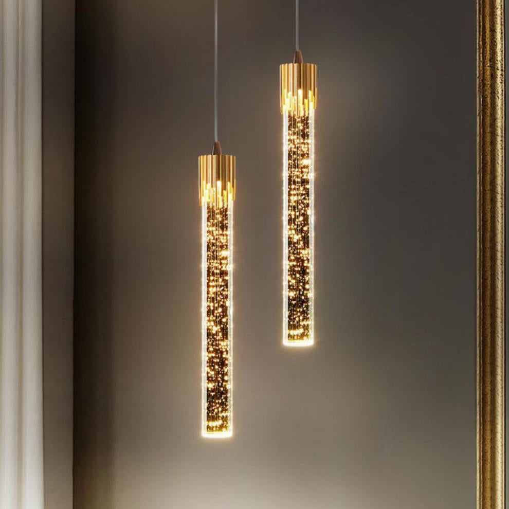寝室用モダンラグジュアリーシリンダーバブルディスクベースアイアンクリスタルLEDペンダントライト