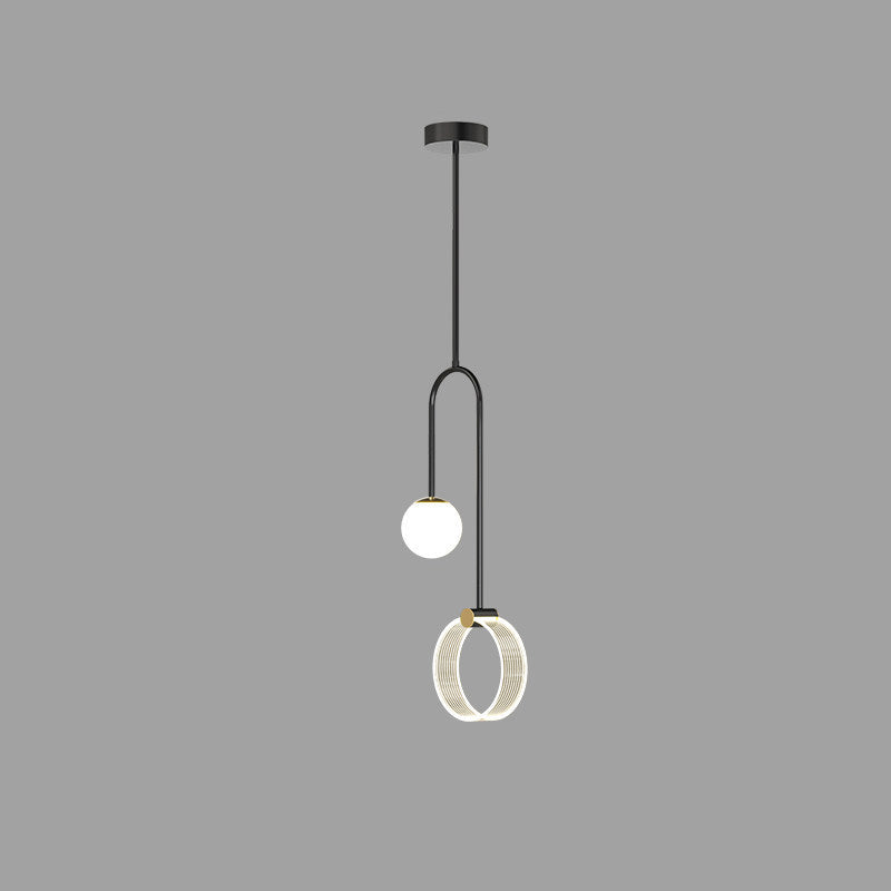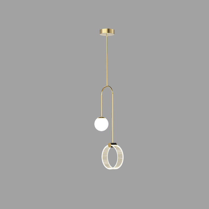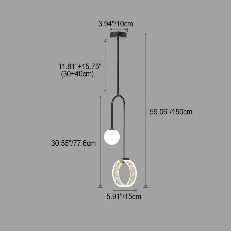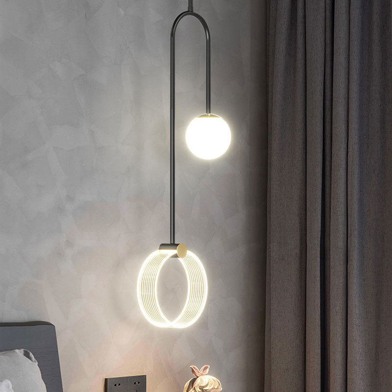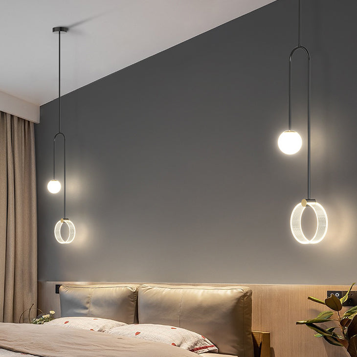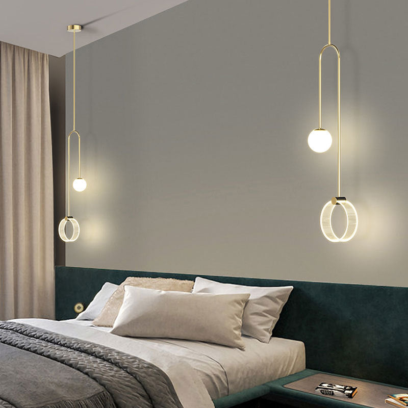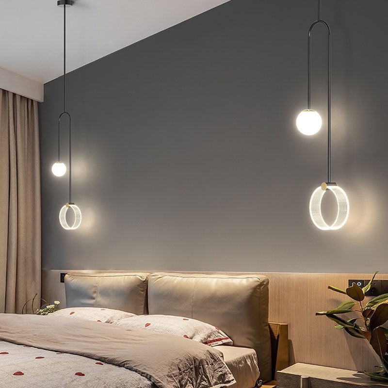 モダンで豪華な鉄製アルミアクリル製円形ボール型ロングワイヤー吊り下げ式LEDペンダントライト(寝室用)