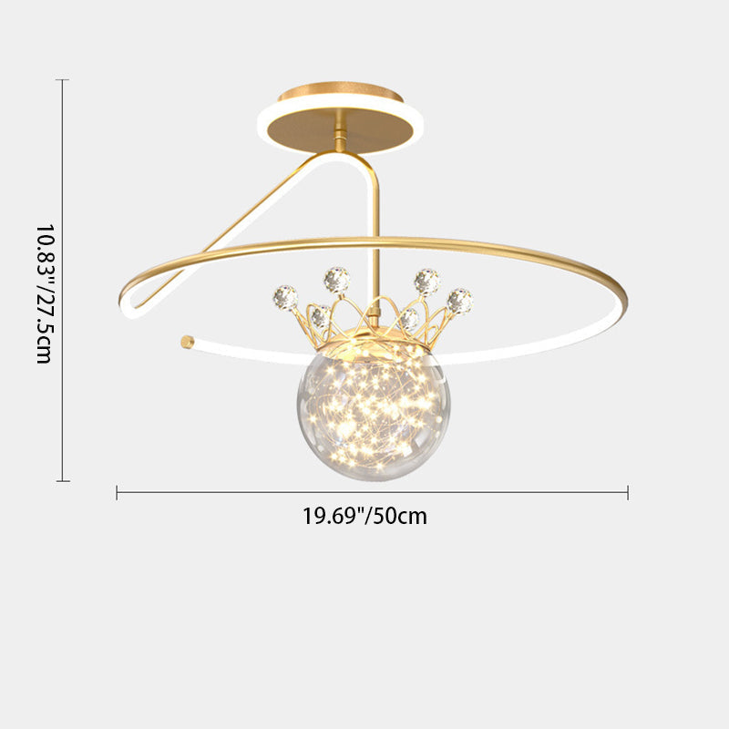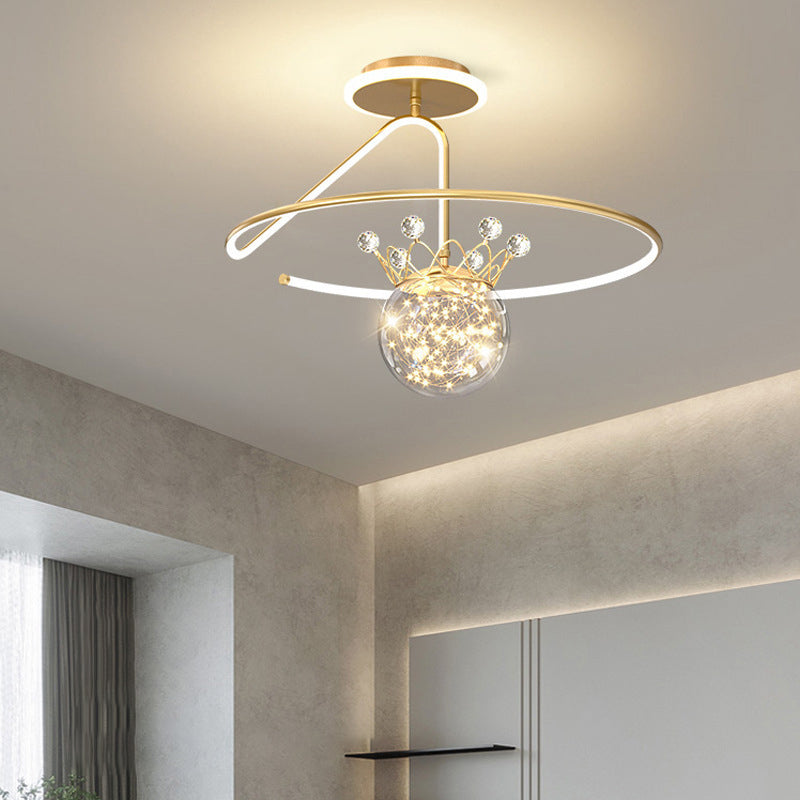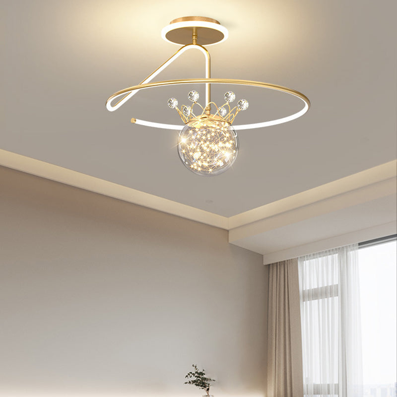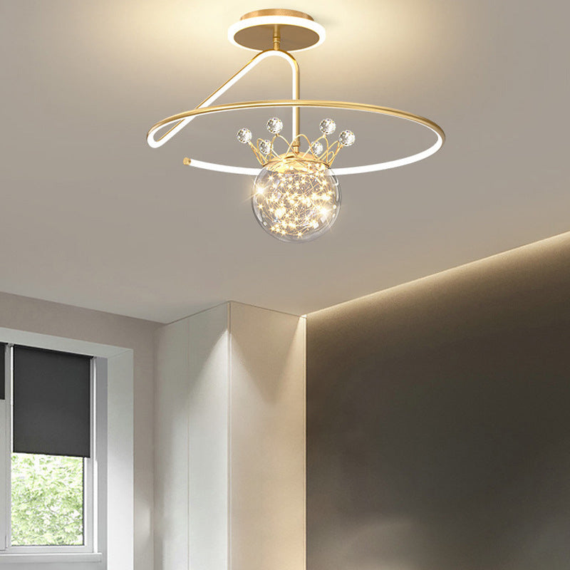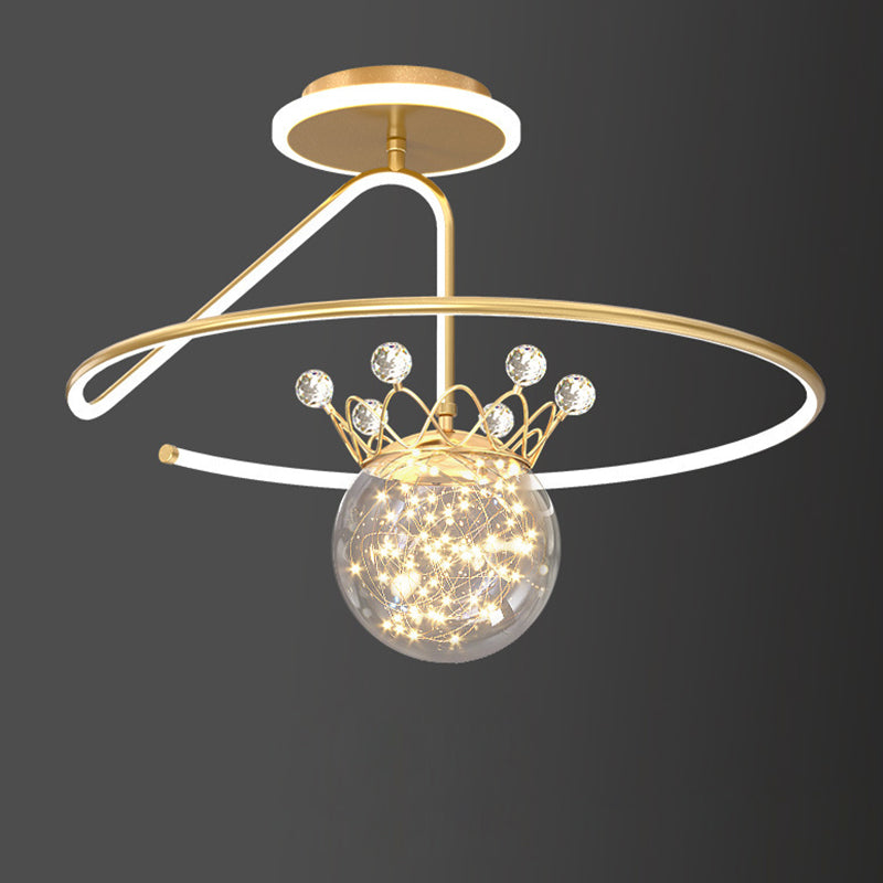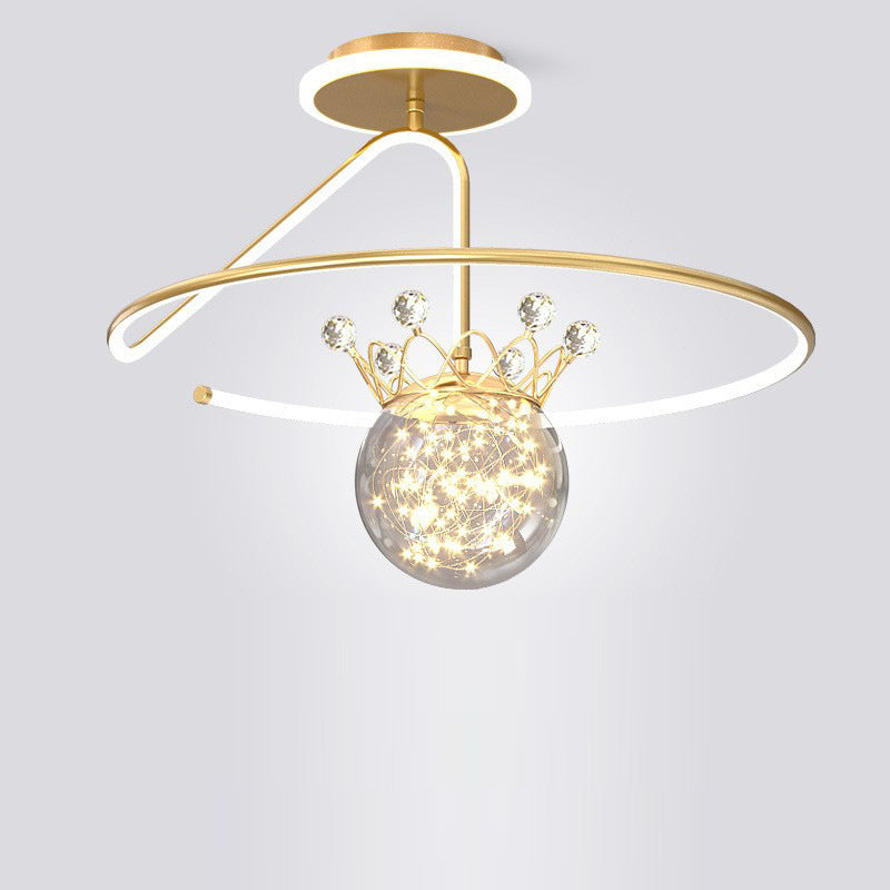 モダンで豪華なラウンドオーブクラウンPCアイアンLEDセミフラッシュマウントシーリングライト寝室用