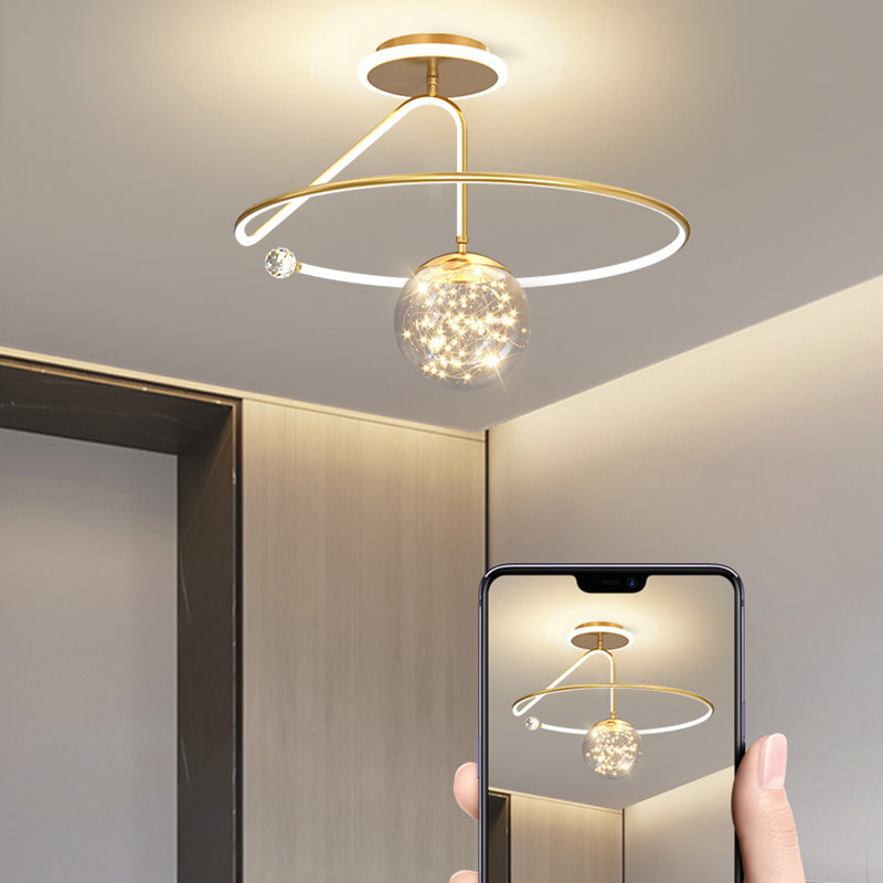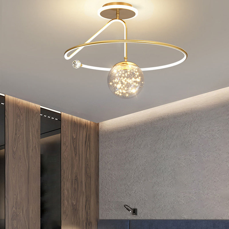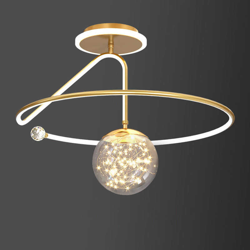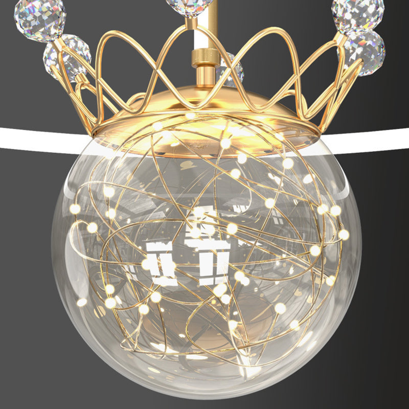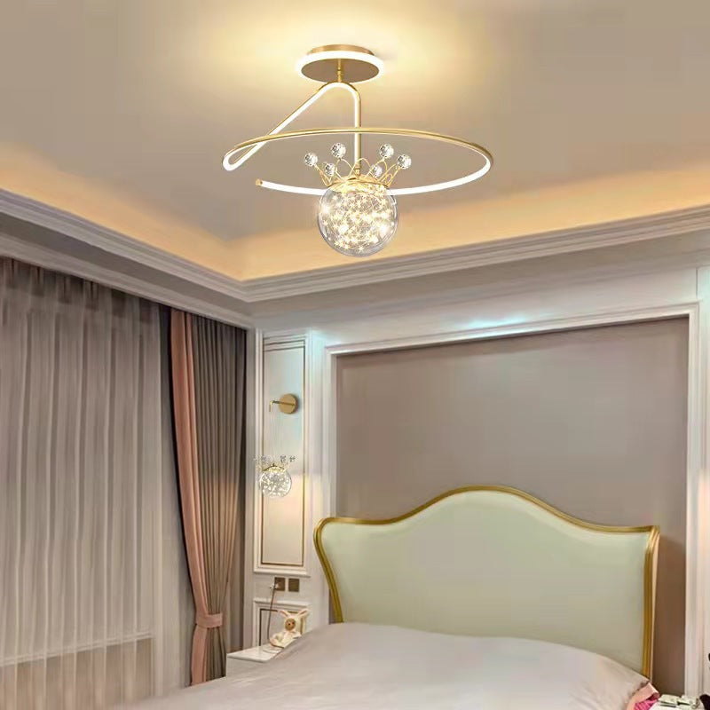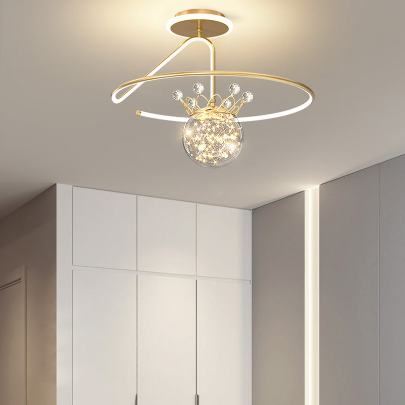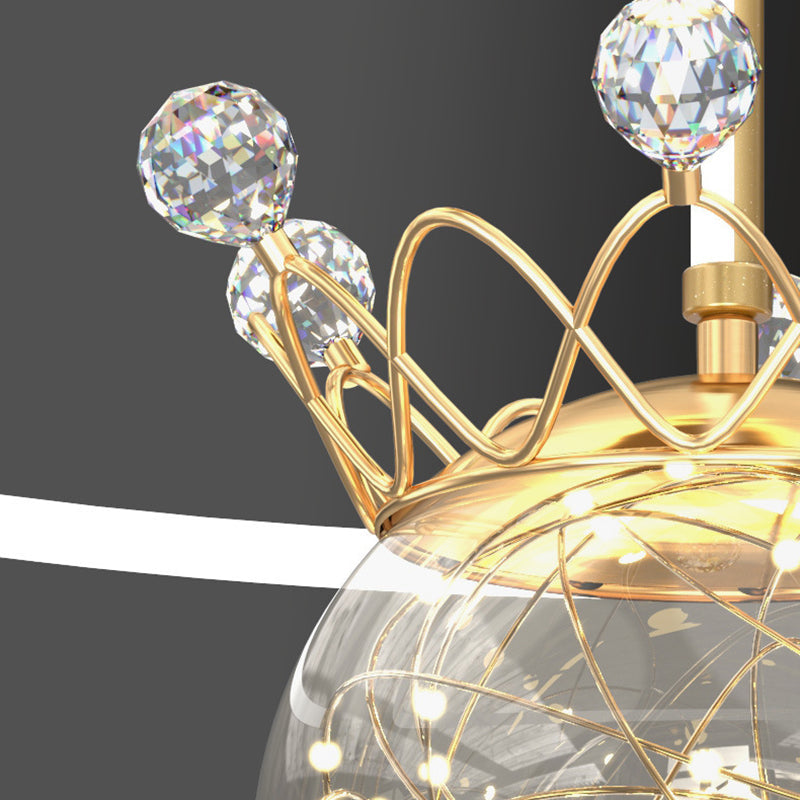 モダンで豪華なラウンドオーブクラウンPCアイアンLEDセミフラッシュマウントシーリングライト寝室用