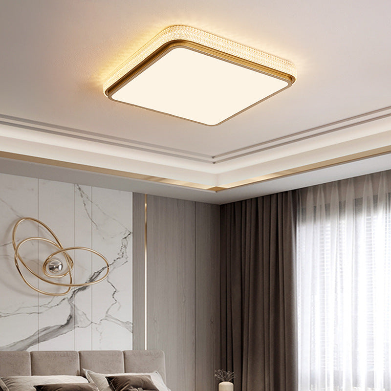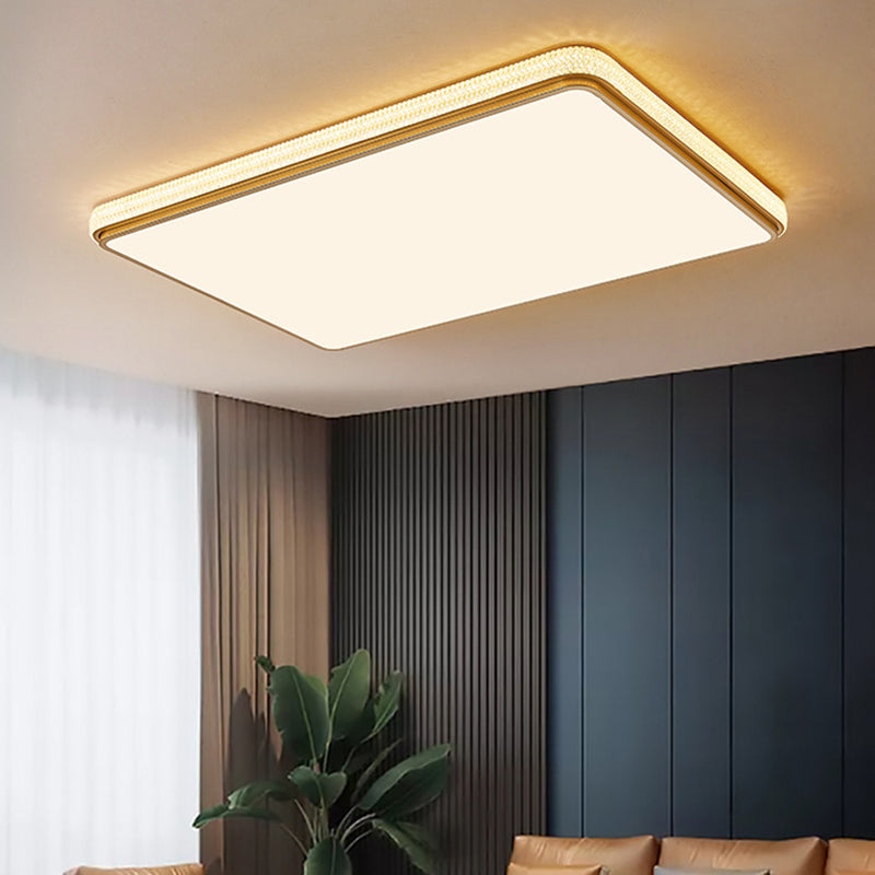 モダンで豪華なスクエア長方形クリスタルアクリルアイアンLEDフラッシュマウントシーリングライトリビングルーム用