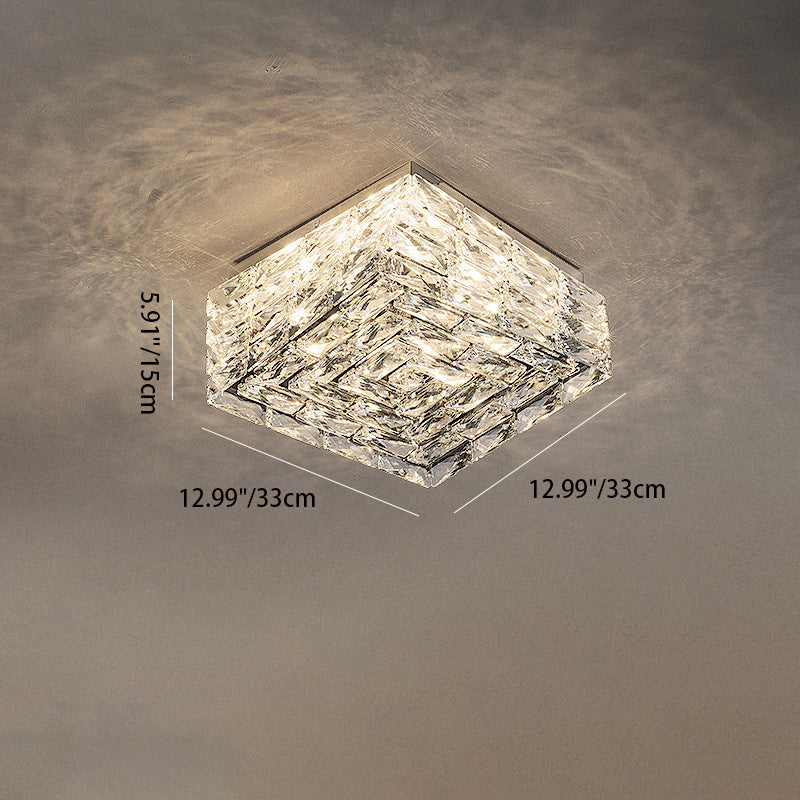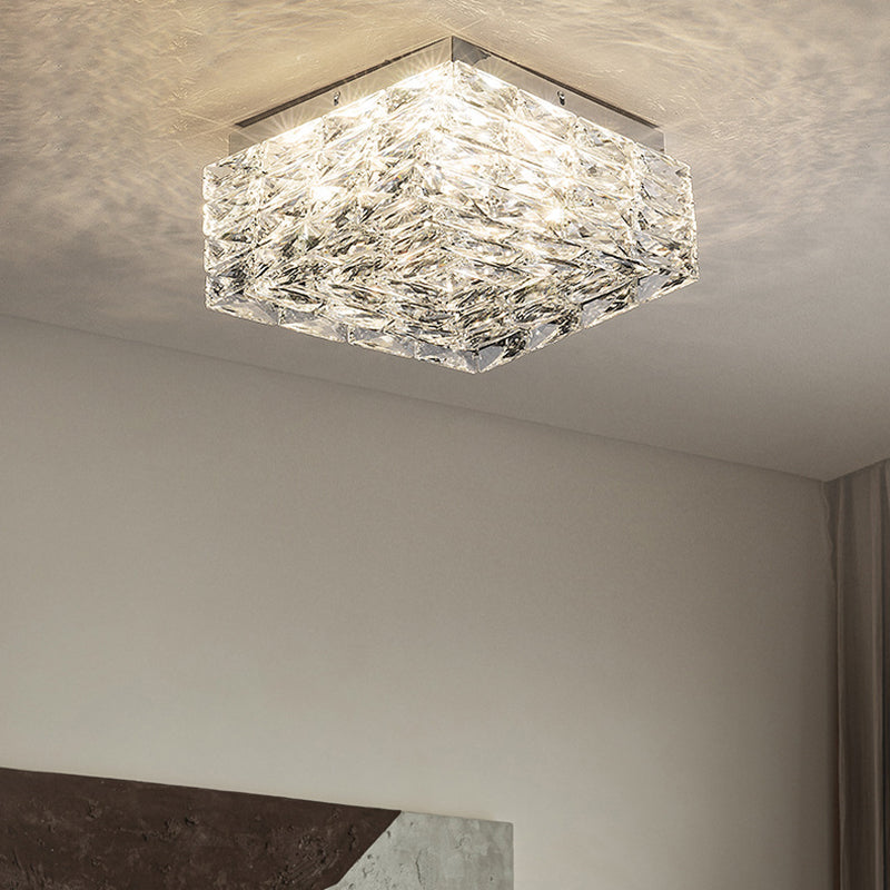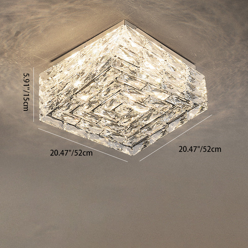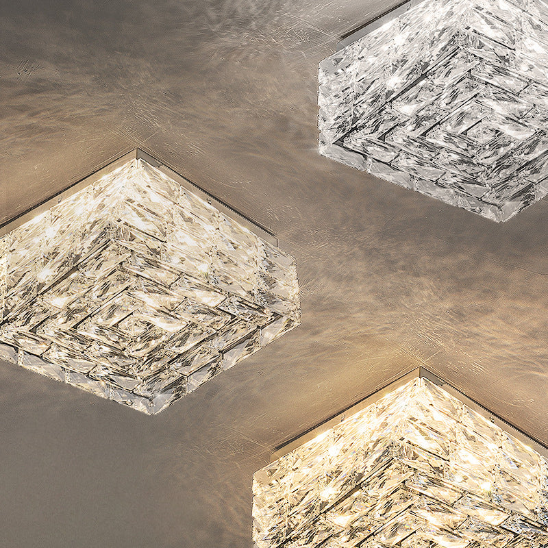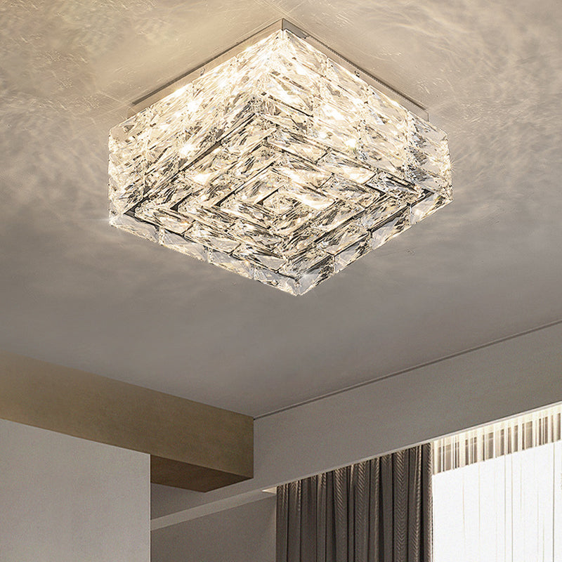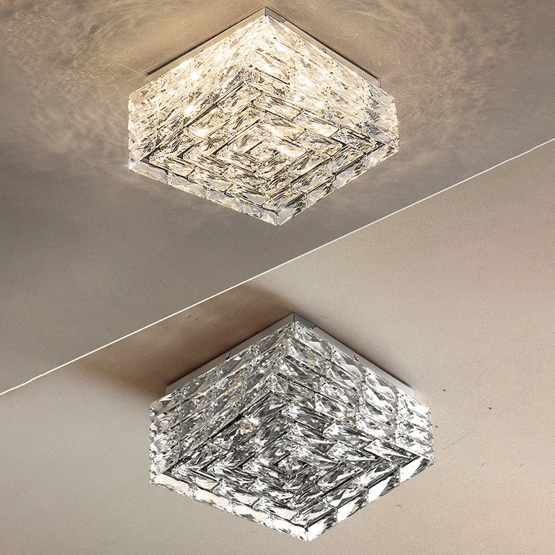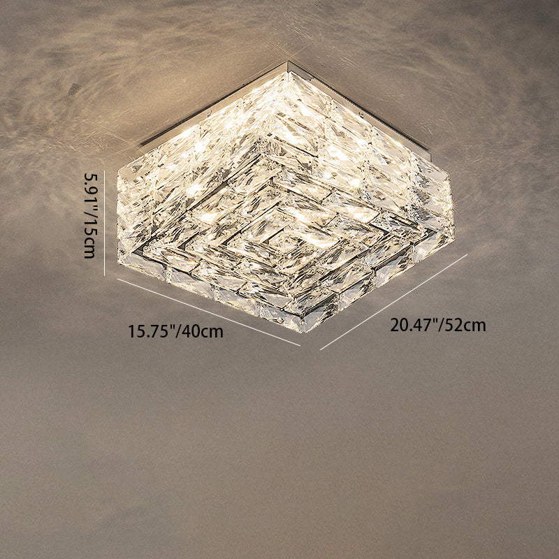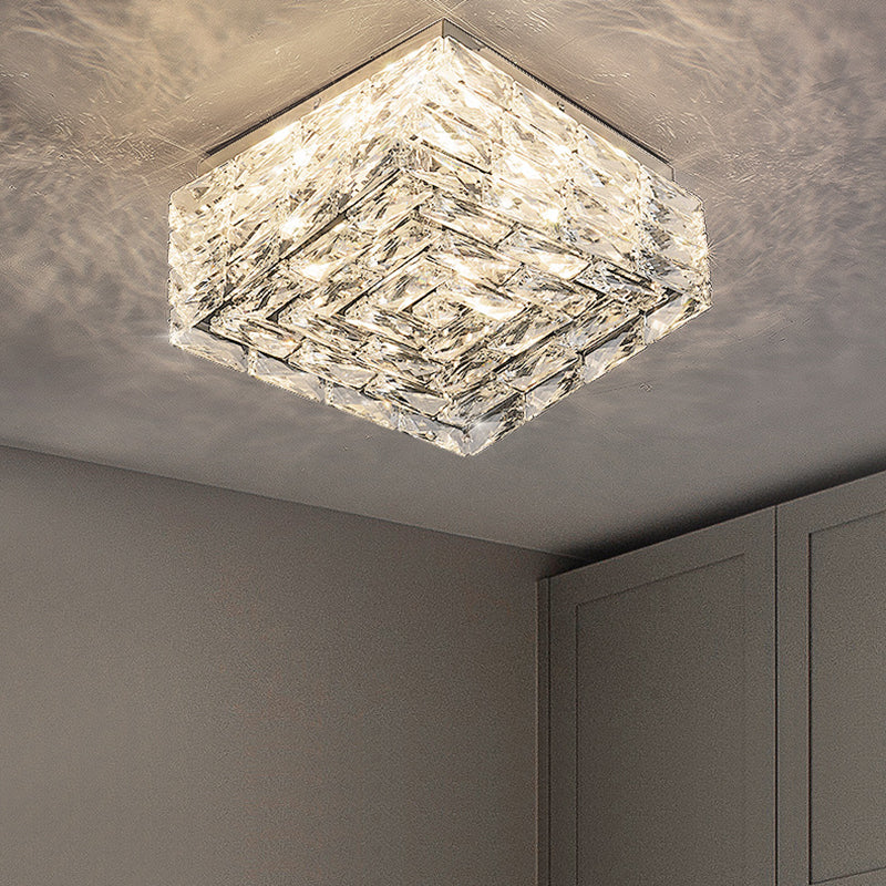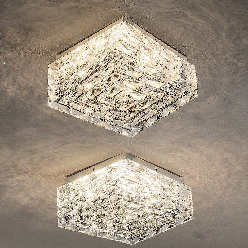 モダンで豪華なステンレススチールクリスタルスクエアLEDセミフラッシュマウントシーリングライトリビングルーム用