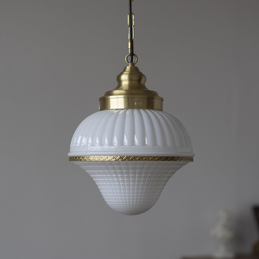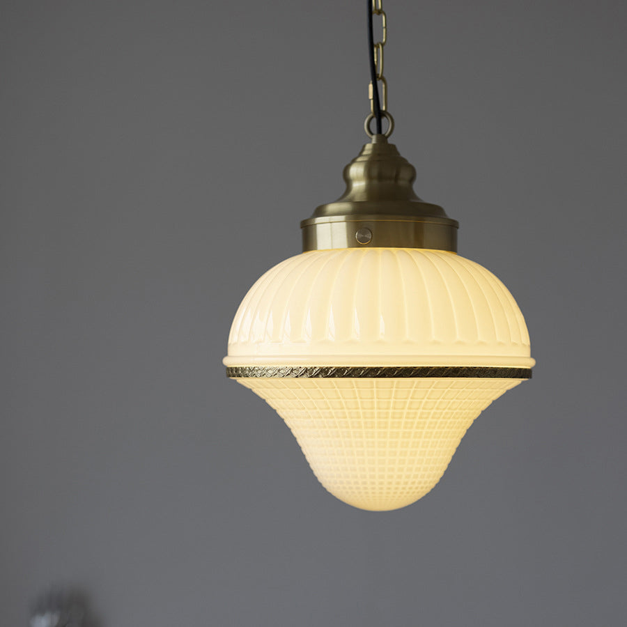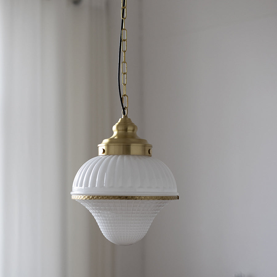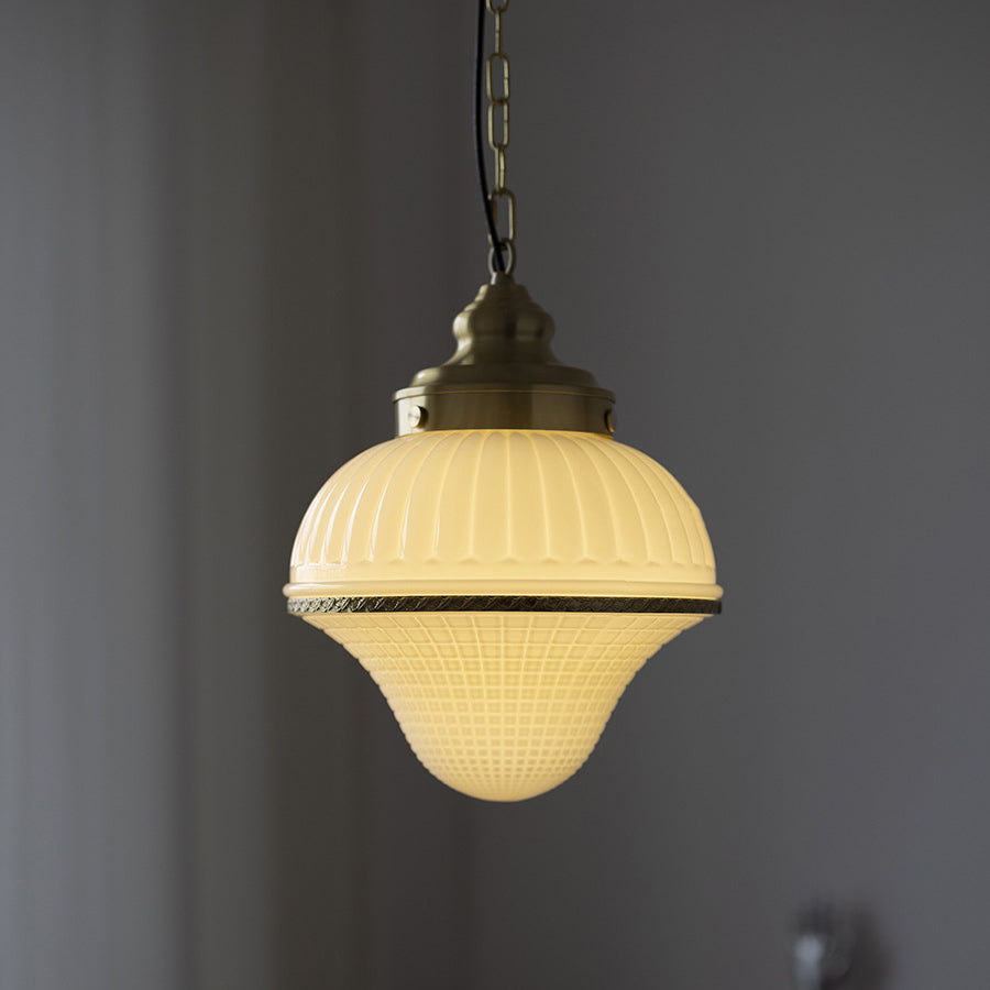 磨き上げられた真鍮のフレームと、愛らしいアイスクリーム型の光沢のあるガラスが特徴の、ミッドセンチュリーモダンペンダントライトで、空間を彩りましょう。反射するガラスの表面が高級感を演出し、調節可能なチェーンでお好みの取り付けが可能。寝室、リビングルーム、カフェなど、どんな空間にもエレガントな雰囲気を添えます。